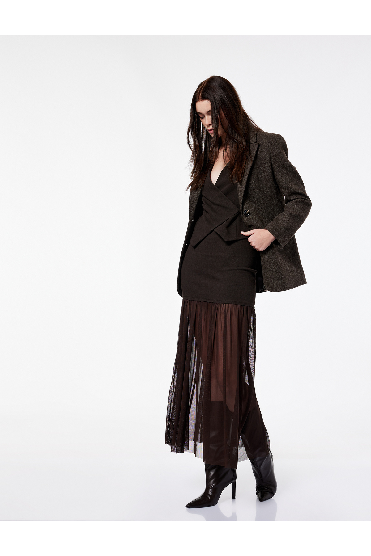 X Şahika Ercümen - Slim Fit Tül Detaylı Midi Etek X Şahika Ercümen - Slim Fit Tül Detaylı Midi Etek 6WAK10307EK XL