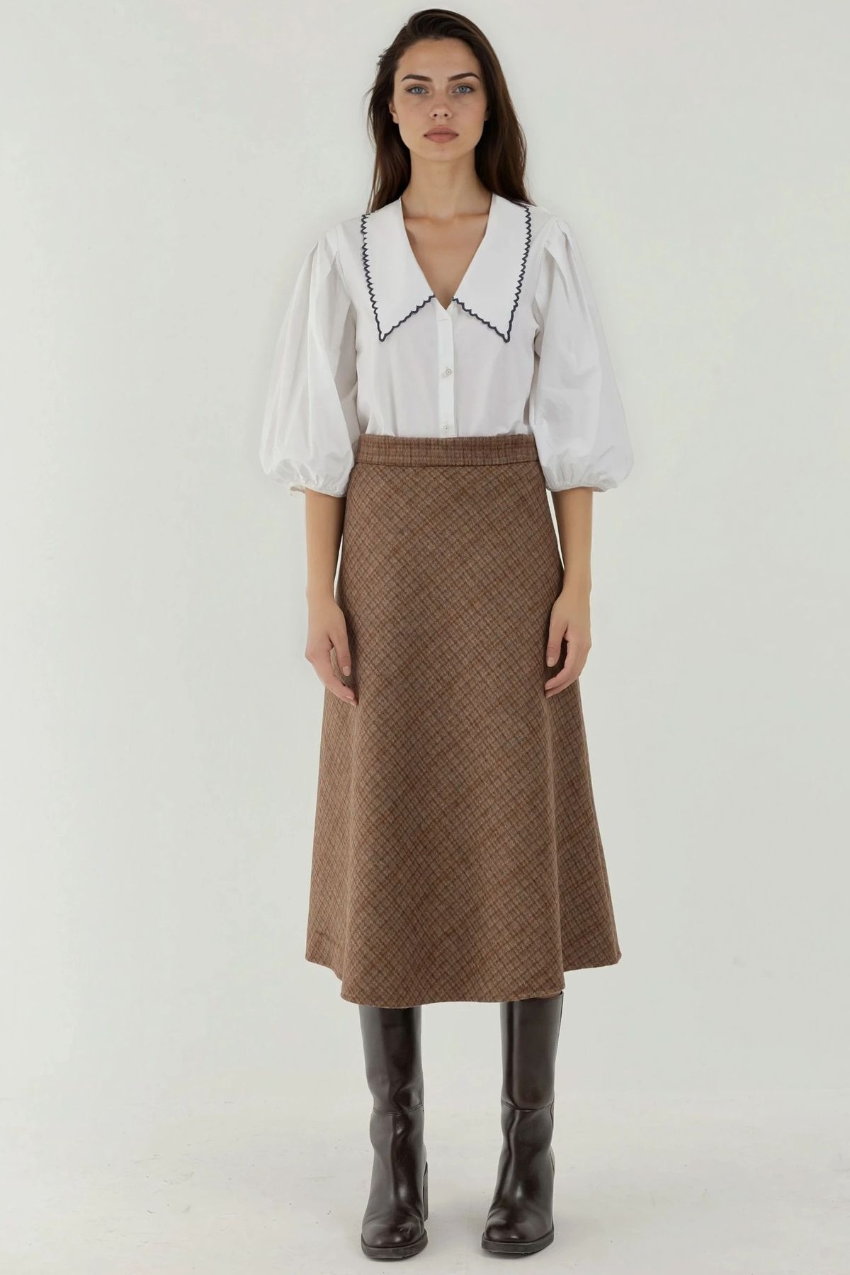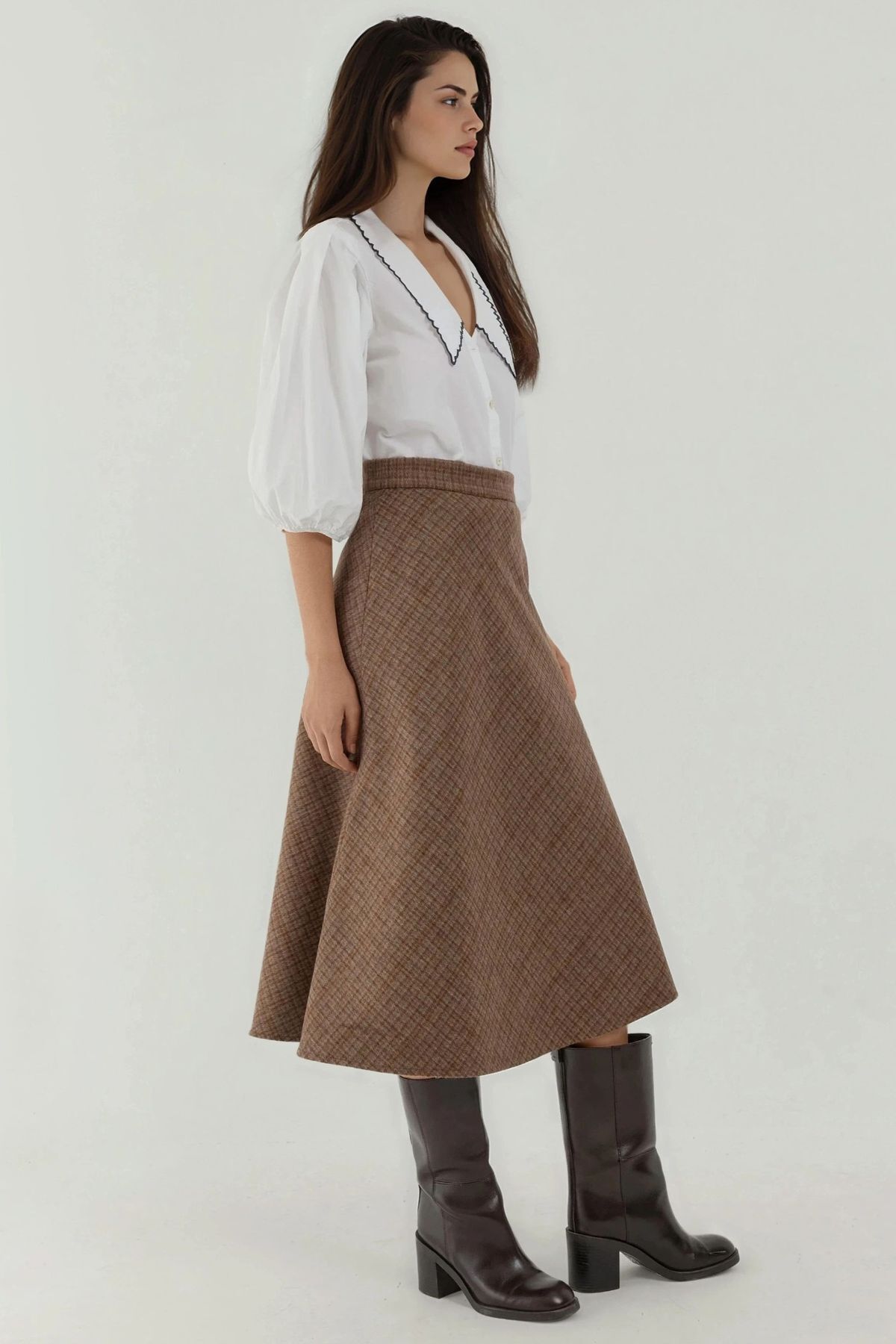 Yün Karışımlı Yüksek Bel Ekose Uzun Etek Yün Karışımlı Yüksek Bel Ekose Uzun Etek MH4UOZB4 XL