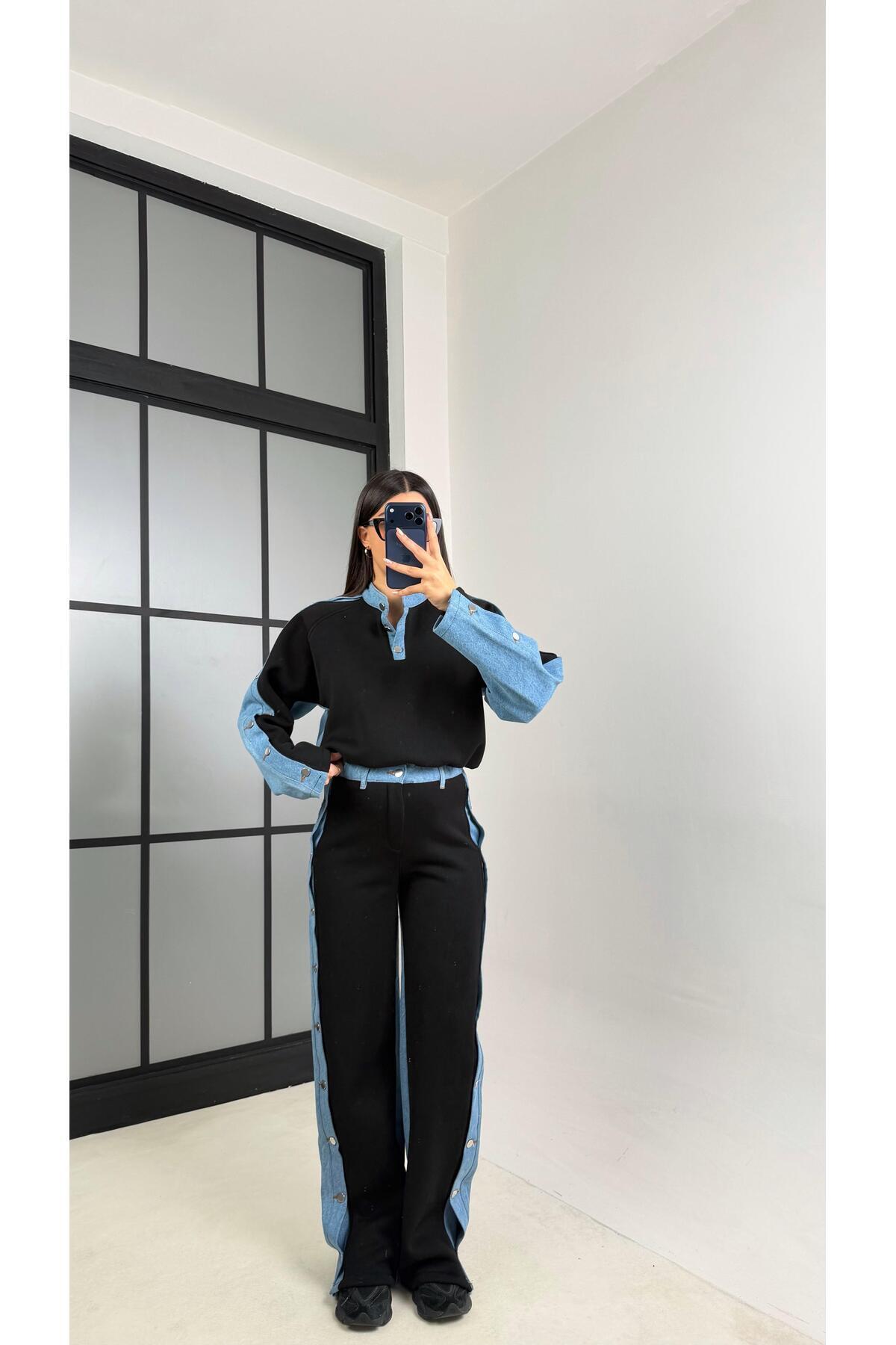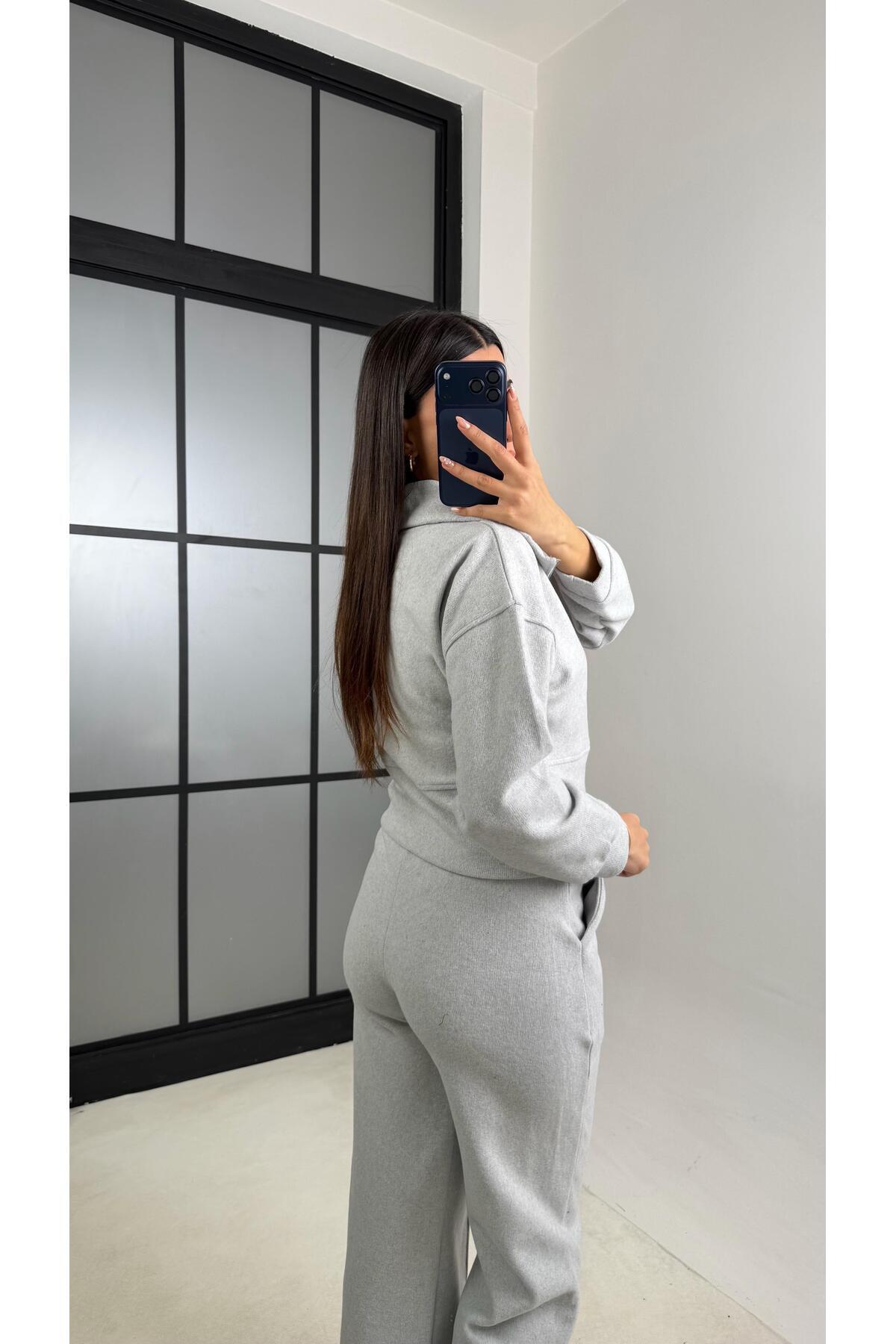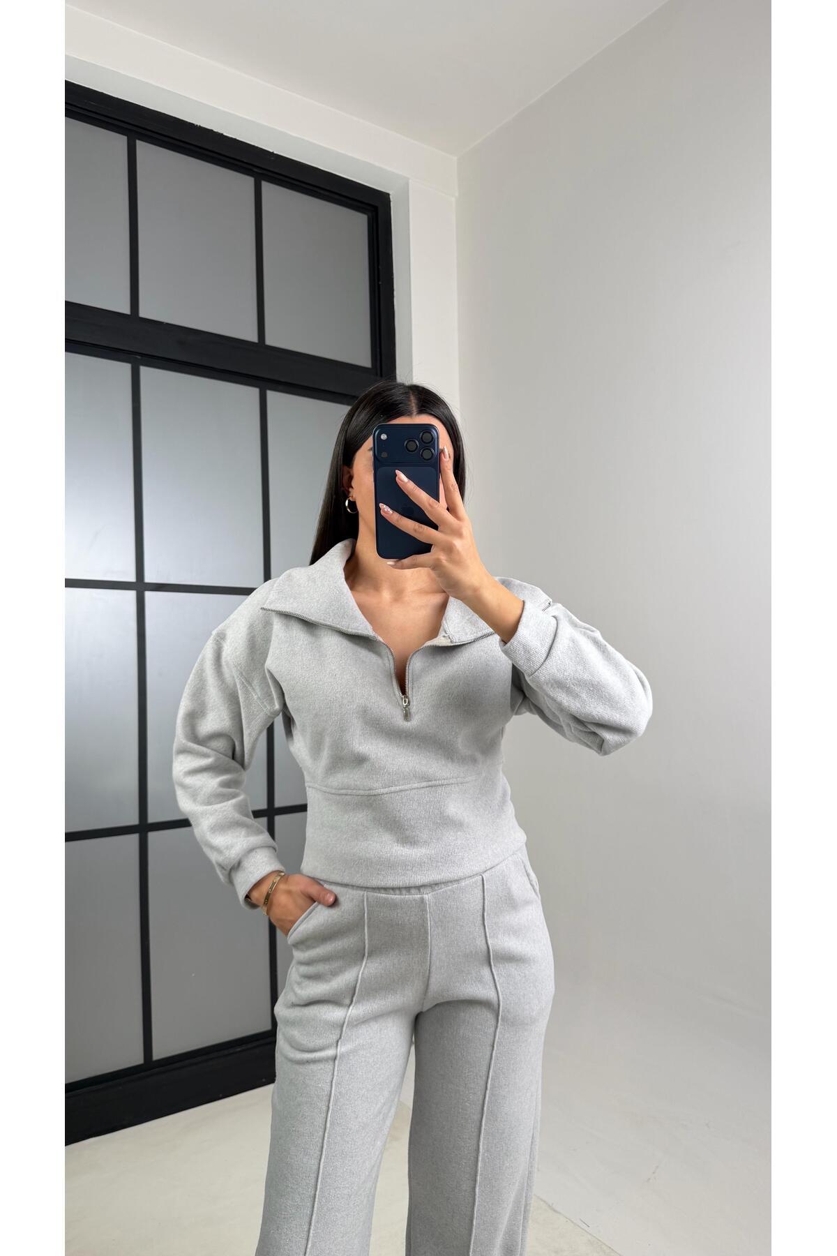 Gri Fermuarlı Kazak Beli Lastikli Pantolon İkili Selanik Kumaş Takım GAUS-00781 Gri Fermuarlı Kazak Beli Lastikli Pantolon İkili Selanik Kumaş Takım GAUS-00781 L