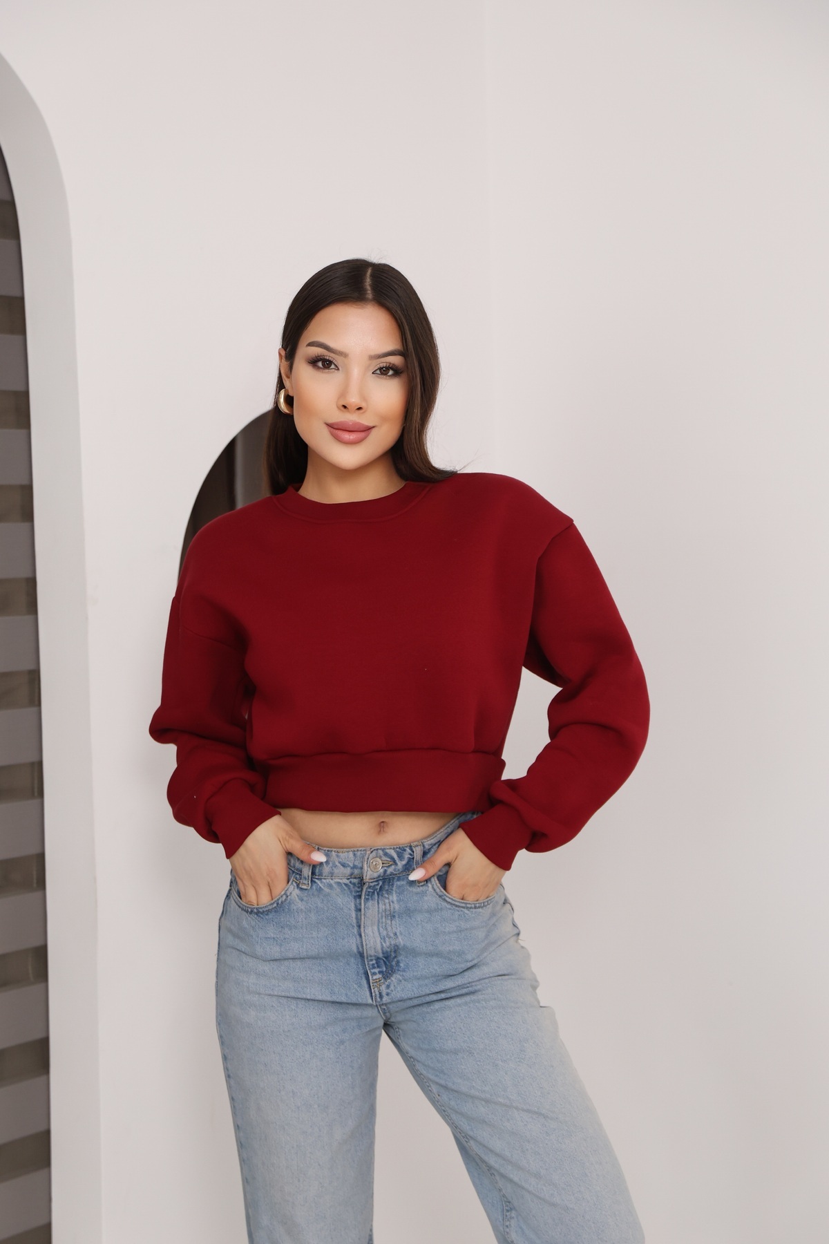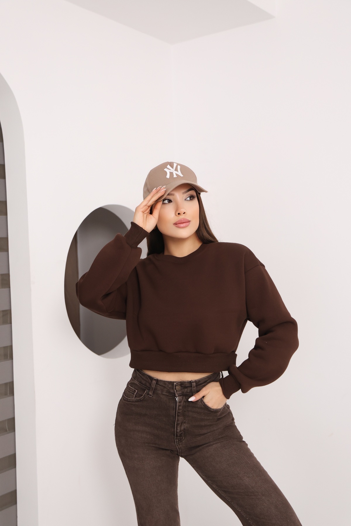 Kadın Üç İplik Şardonlu Oversize Crop Sweatshirt Kadın Üç İplik Şardonlu Oversize Crop Sweatshirt crp3sweat 2XL
