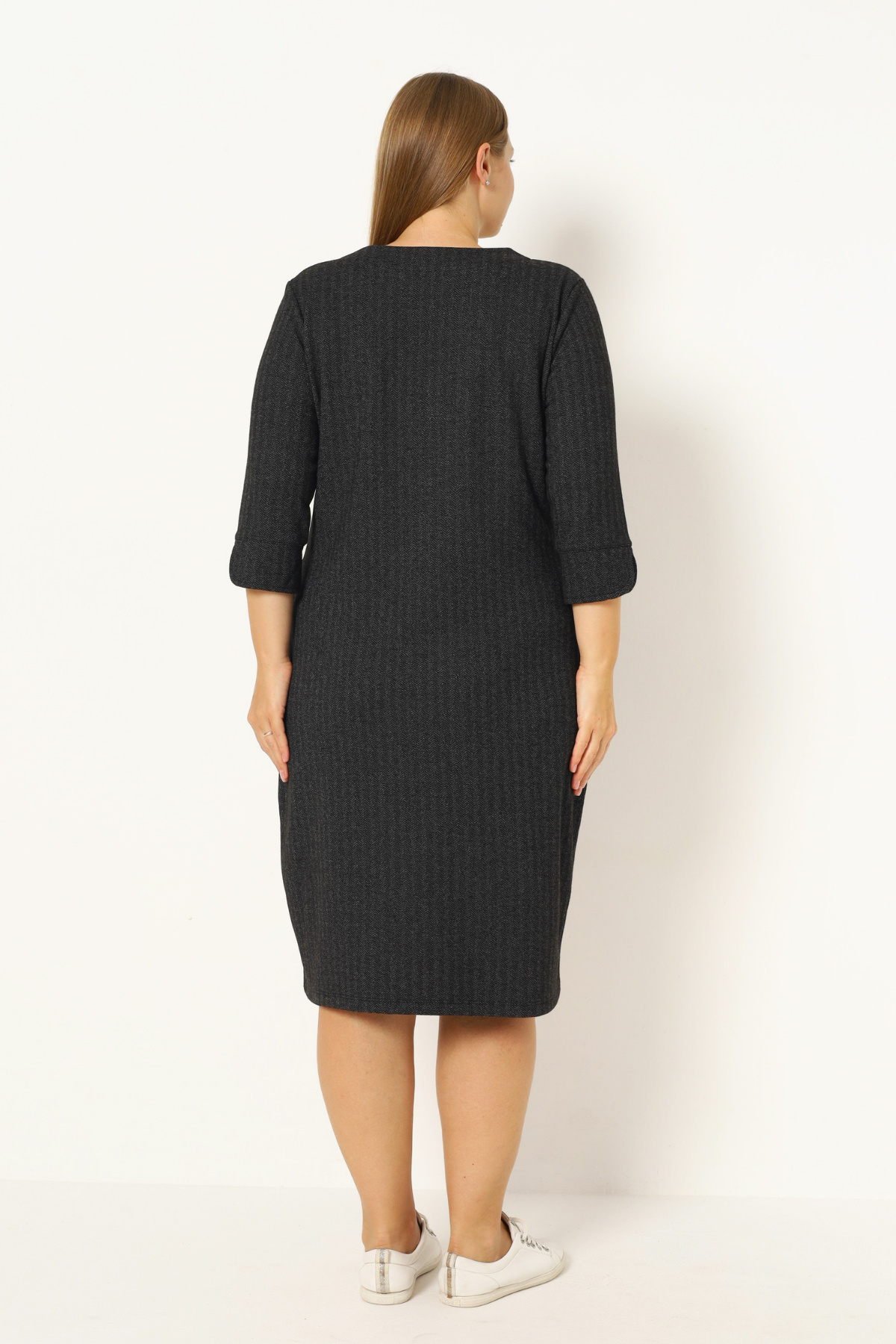 Kadın Büyük Beden Antrasit Jakarlı Cepli Truvakar Kollu Anvelop Elbise Kadın Büyük Beden Antrasit Jakarlı Cepli Truvakar Kollu Anvelop Elbise 26076 5XL