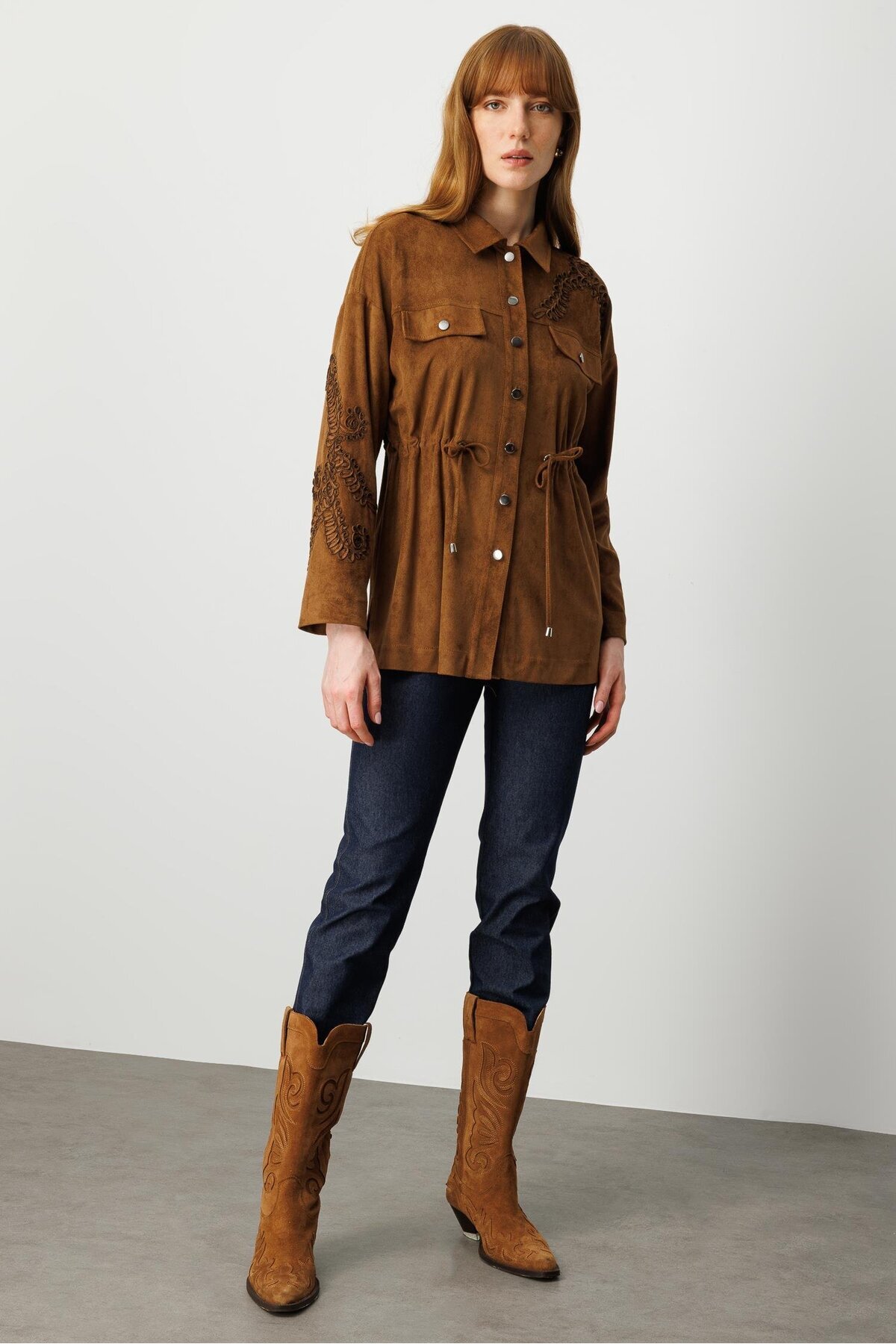 Modailgi Şömziye Yakalı Roba Ve Kapak Cep Detaylı Belde Tünel Bağcıklı Lase Nakış Gömlek Taba Modailgi Şömziye Yakalı Roba Ve Kapak Cep Detaylı Belde Tünel Bağcıklı Lase Nakış Gömlek Taba ILG260TNK15037 42