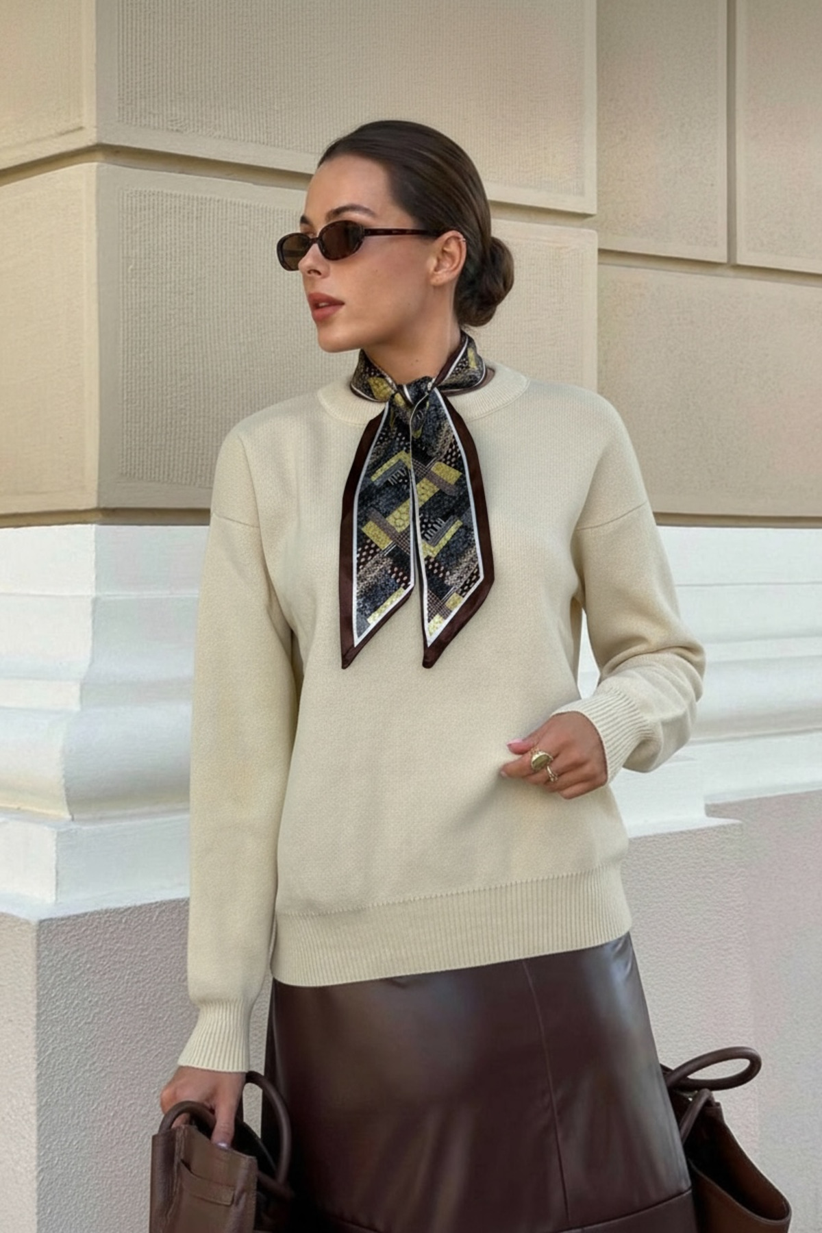 Fularlı Biskilet Yaka Regular Triko Kazak Fularlı Biskilet Yaka Regular Triko Kazak FLR343 Standart