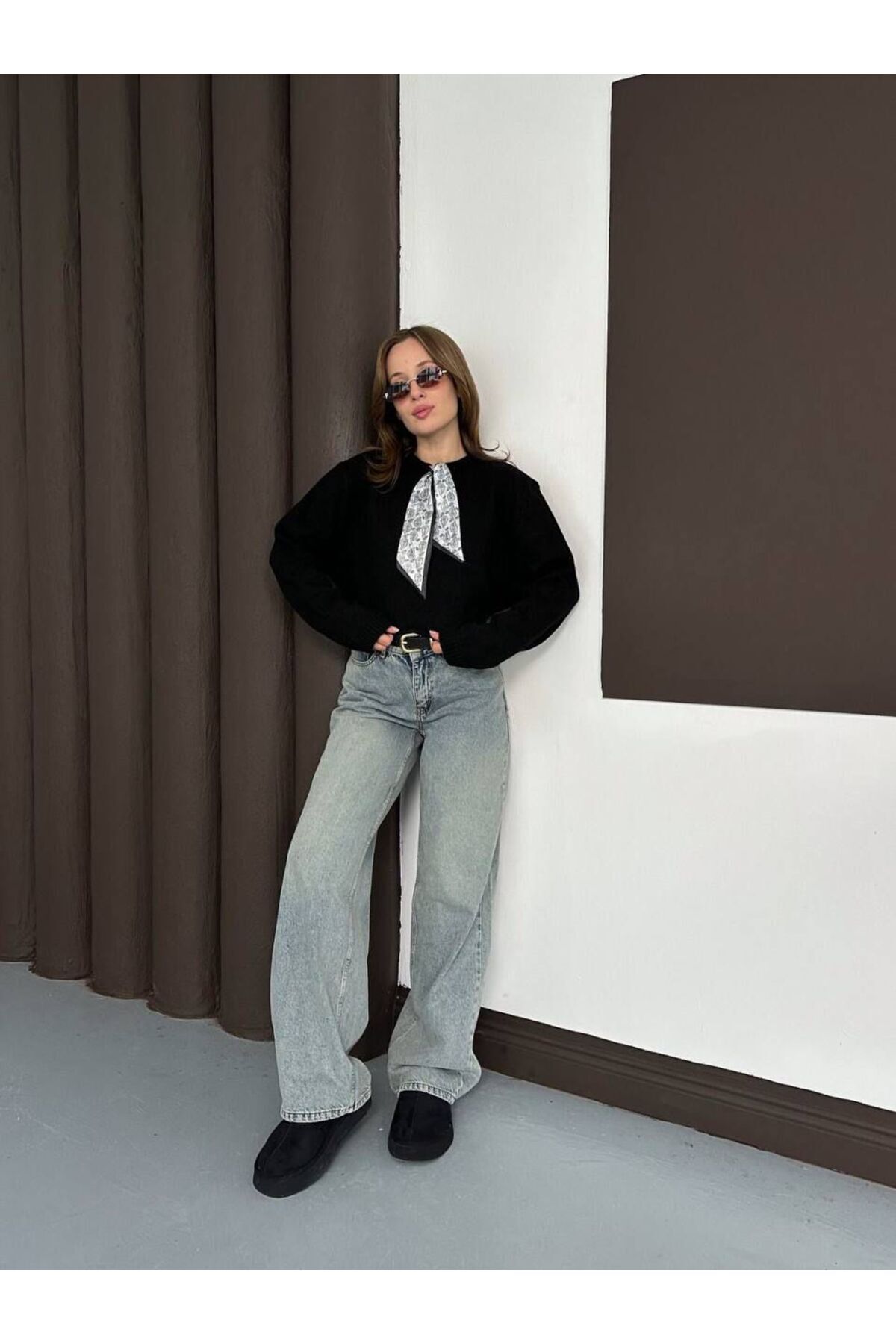 Fularlı Biskilet Yaka Regular Triko Kazak Fularlı Biskilet Yaka Regular Triko Kazak FLR343 Standart