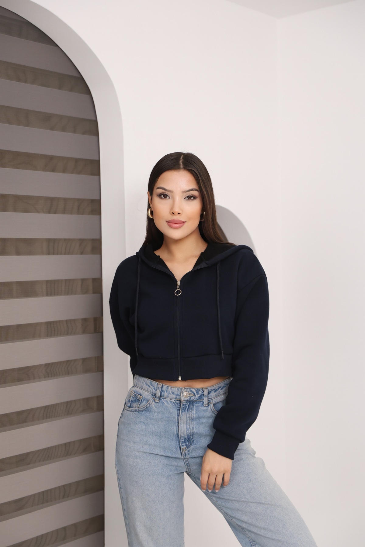 Fermuarlı Kısa Üç İplik Şardonlu Sweatshirt Fermuarlı Kısa Üç İplik Şardonlu Sweatshirt fküişs001 2XL