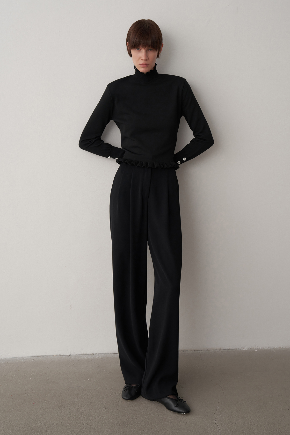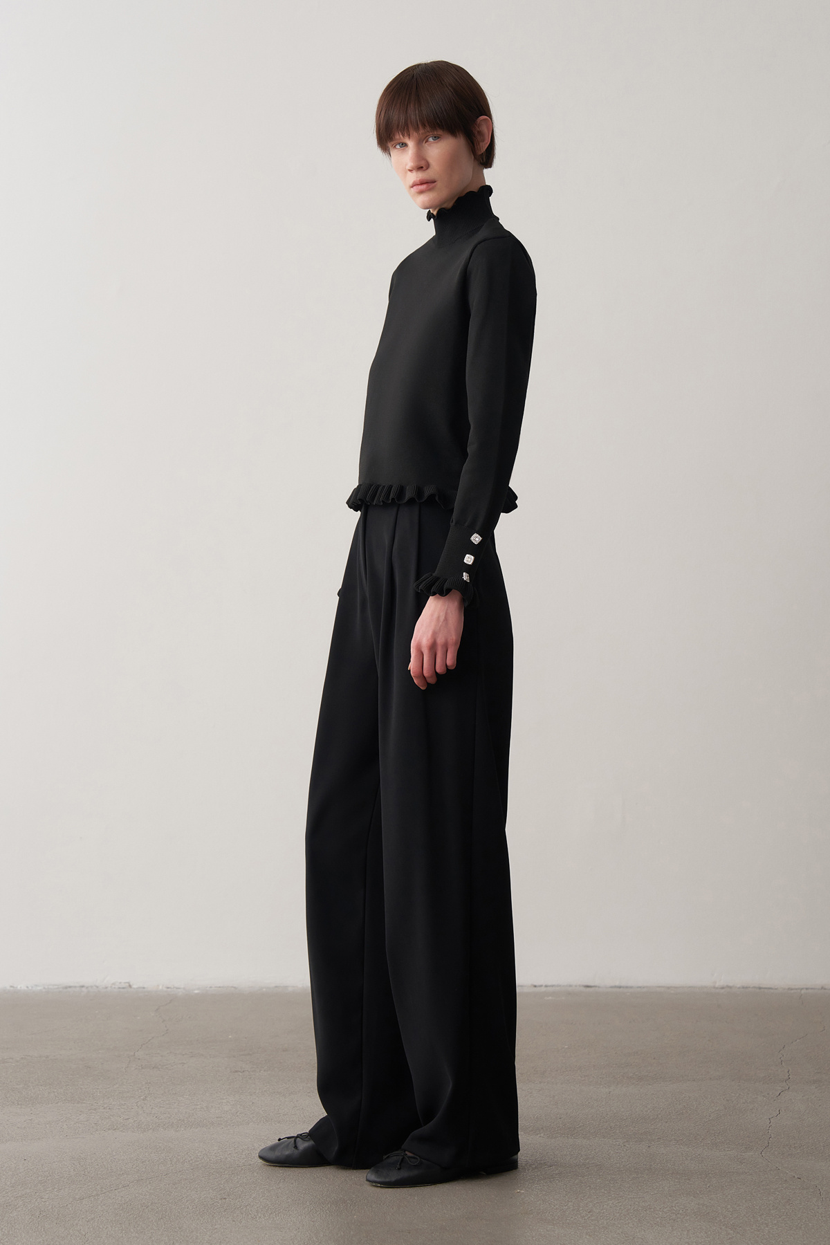 Siyah Dik Yaka Kol Detaylı Triko Kazak Siyah Dik Yaka Kol Detaylı Triko Kazak MTHM026TK Standart