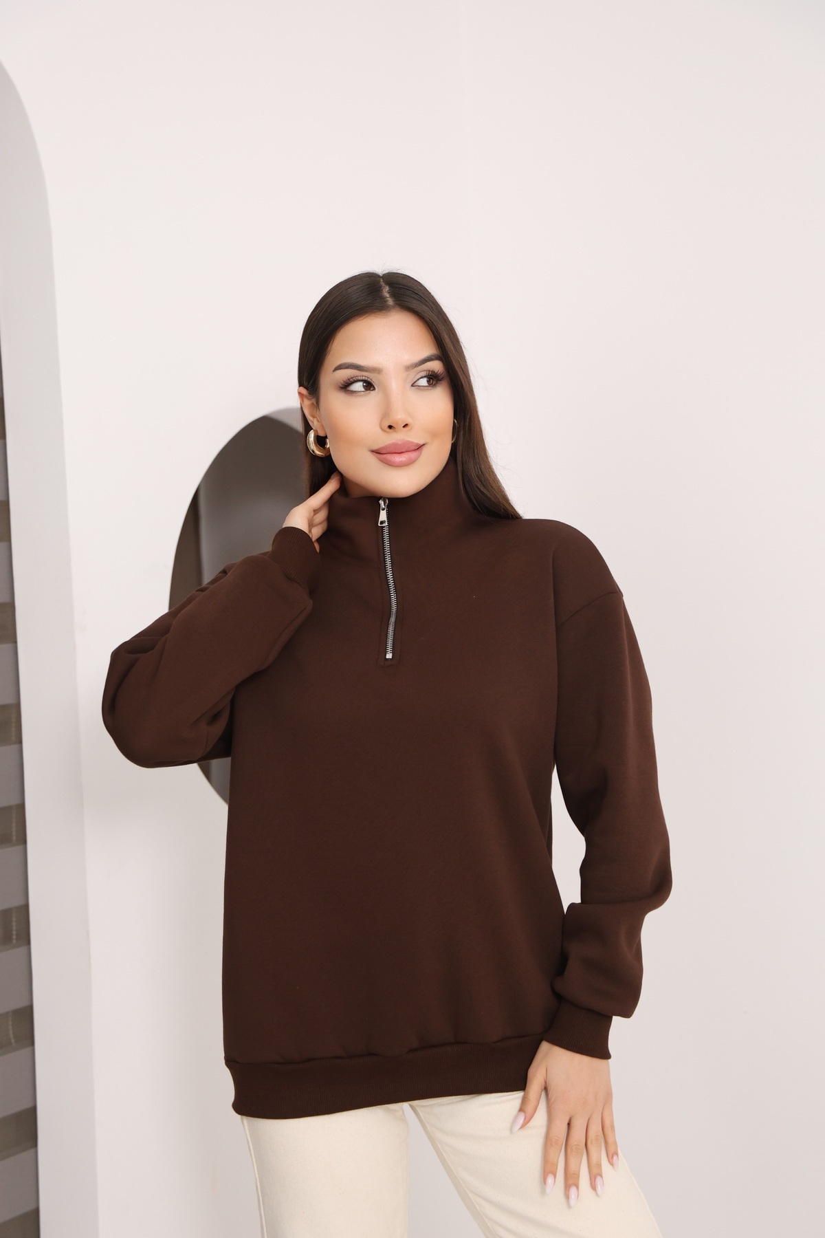 Dik Yakalı Yarım Fermuarlı Üç İplik Şardonlu Sweatshirt Dik Yakalı Yarım Fermuarlı Üç İplik Şardonlu Sweatshirt dyfüs001 2XL