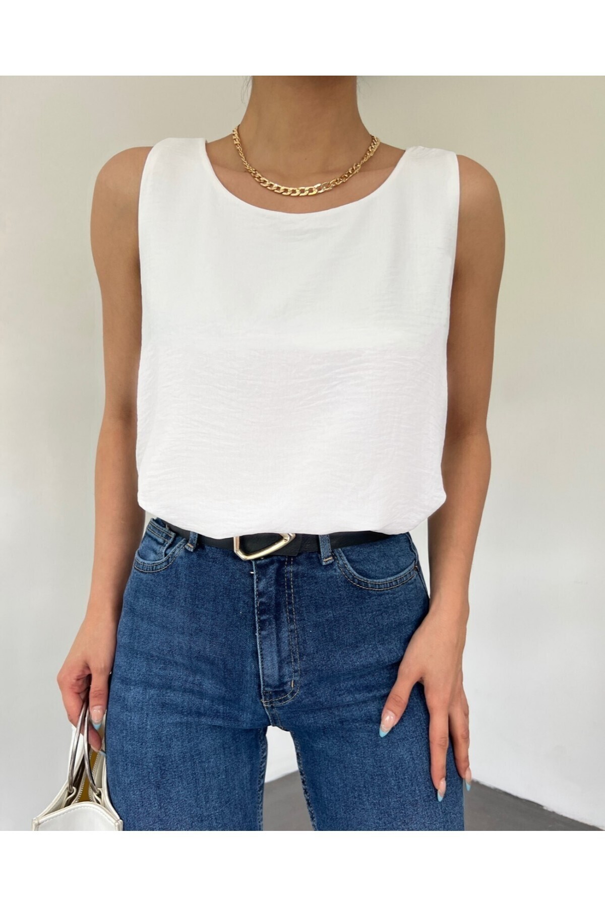 Şık Kolsuz Saten Görünümlü Bluz Şık Kolsuz Saten Görünümlü Bluz 31 46