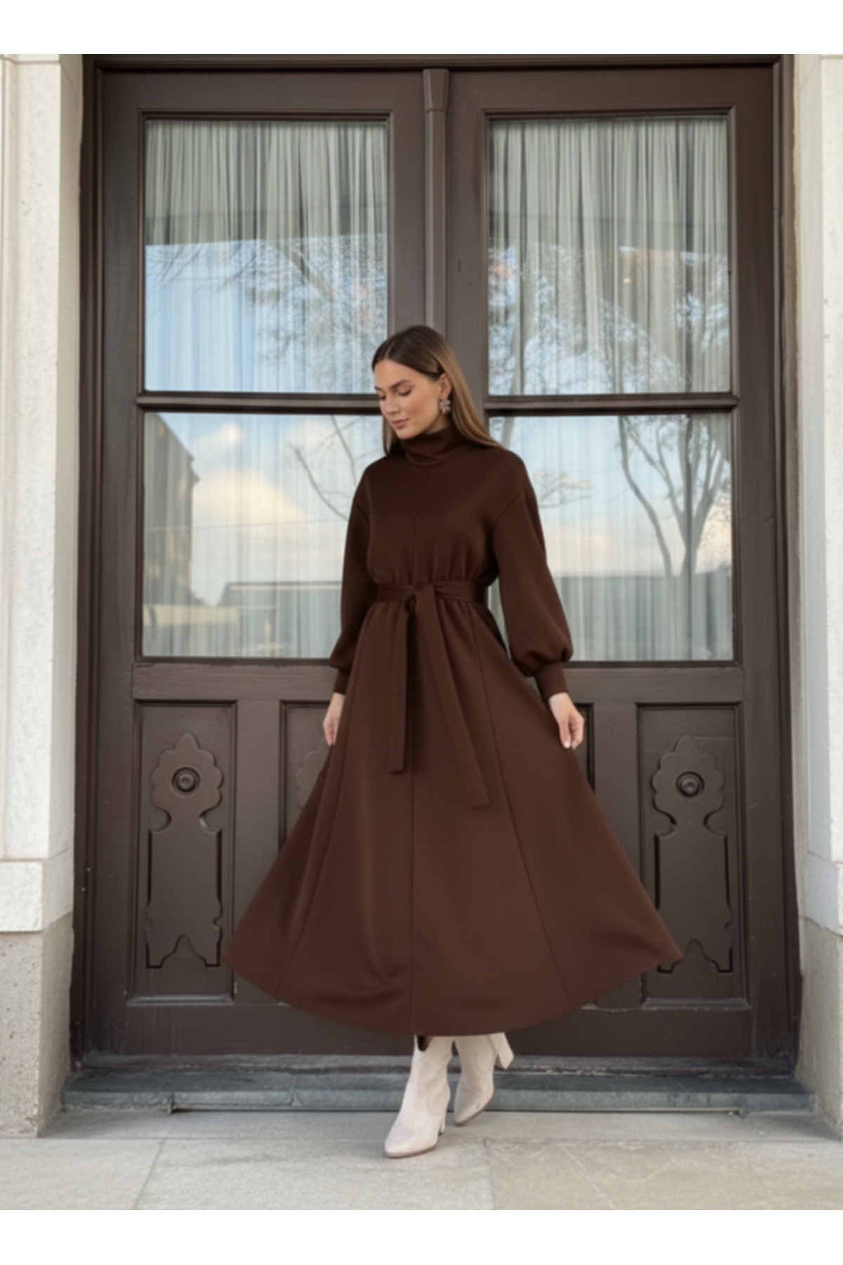 kadın Kemer Detaylı Yüksek Yaka uzun Kışlık Elbise – Kahverengi kadın Kemer Detaylı Yüksek Yaka uzun Kışlık Elbise – Kahverengi muh2314 XL