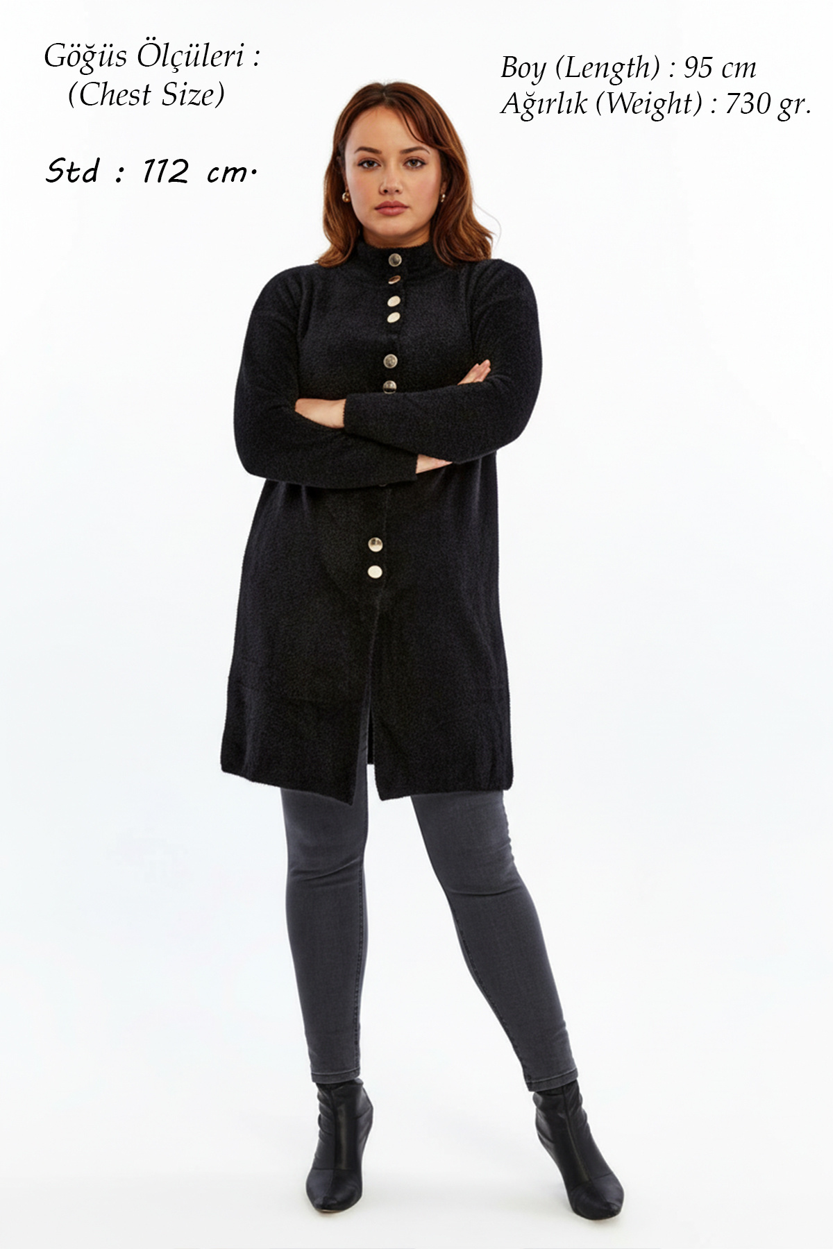 Triko Büyük Beden Angora Kadın Yumoş Çok Kalın Yüksek Kalite Anne Uzun Kışlık Siyah Hırka Triko Büyük Beden Angora Kadın Yumoş Çok Kalın Yüksek Kalite Anne Uzun Kışlık Siyah Hırka 9903 54-56