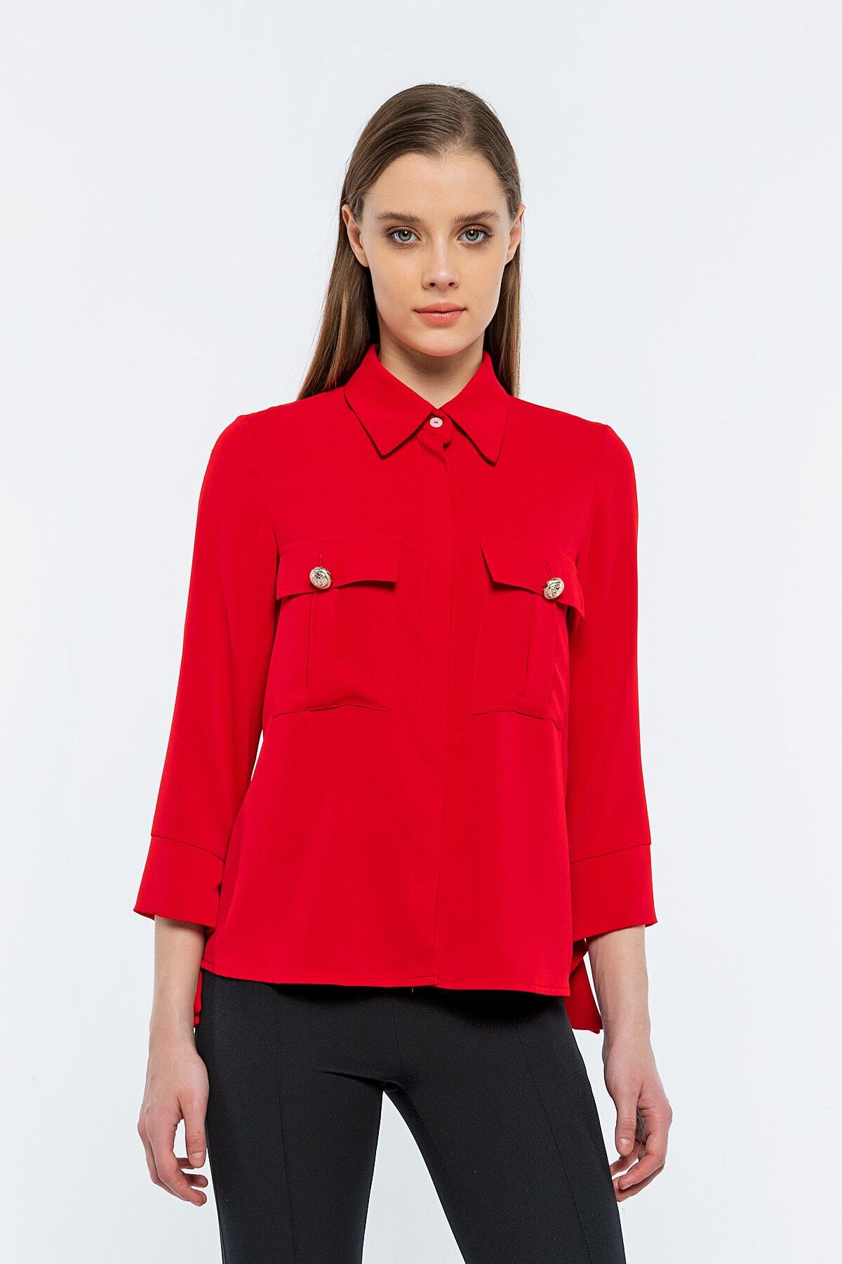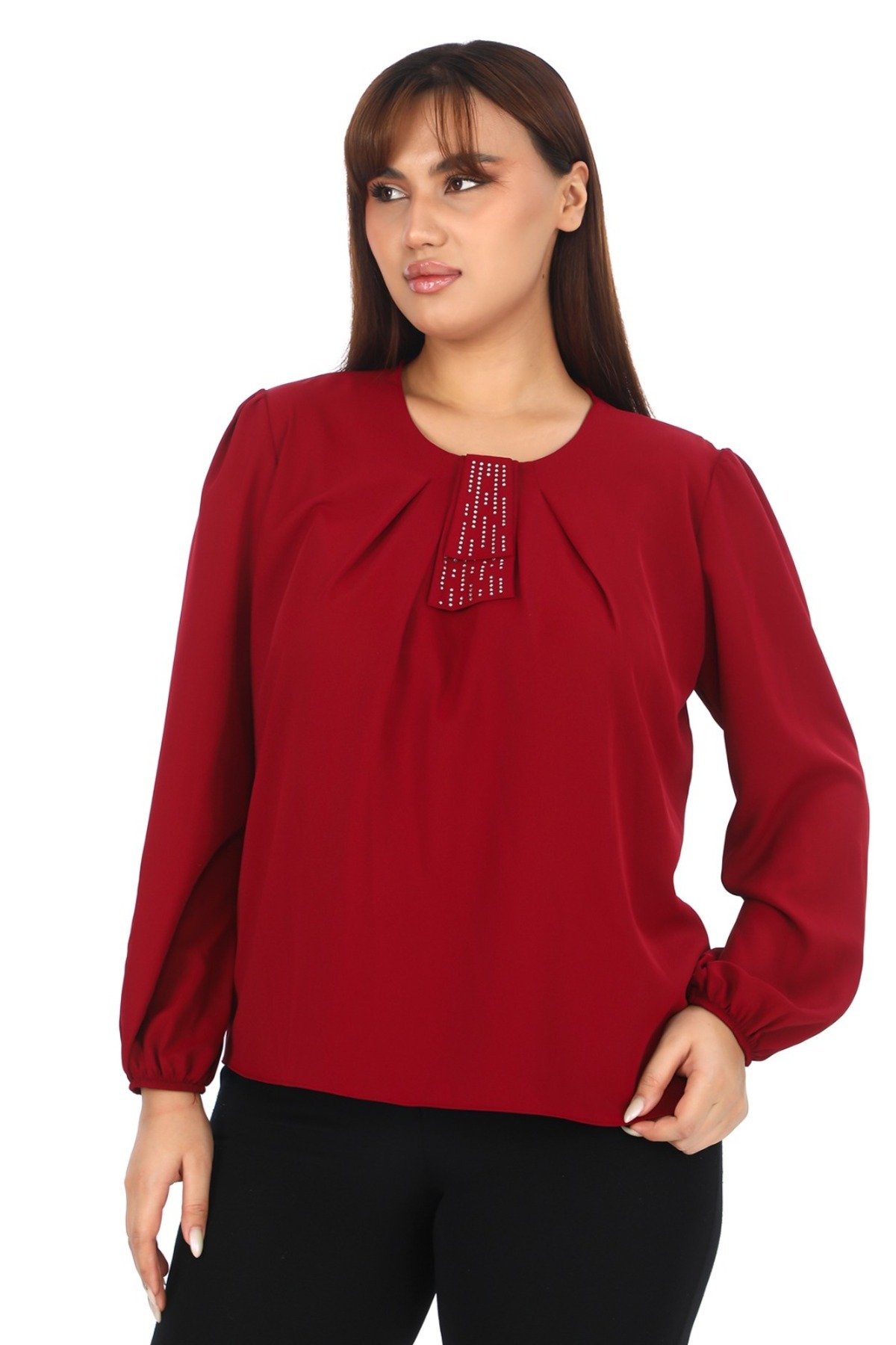 Taş Detaylı Piliseli Uzun Kollu Saks Bluz Taş Detaylı Piliseli Uzun Kollu Saks Bluz 3737 52