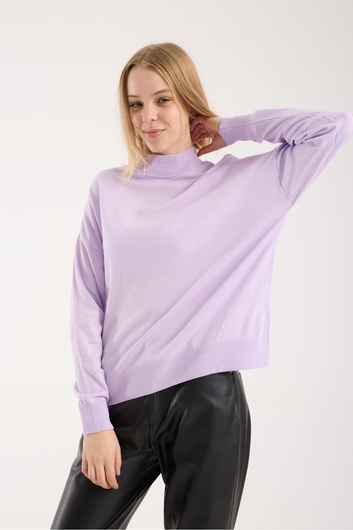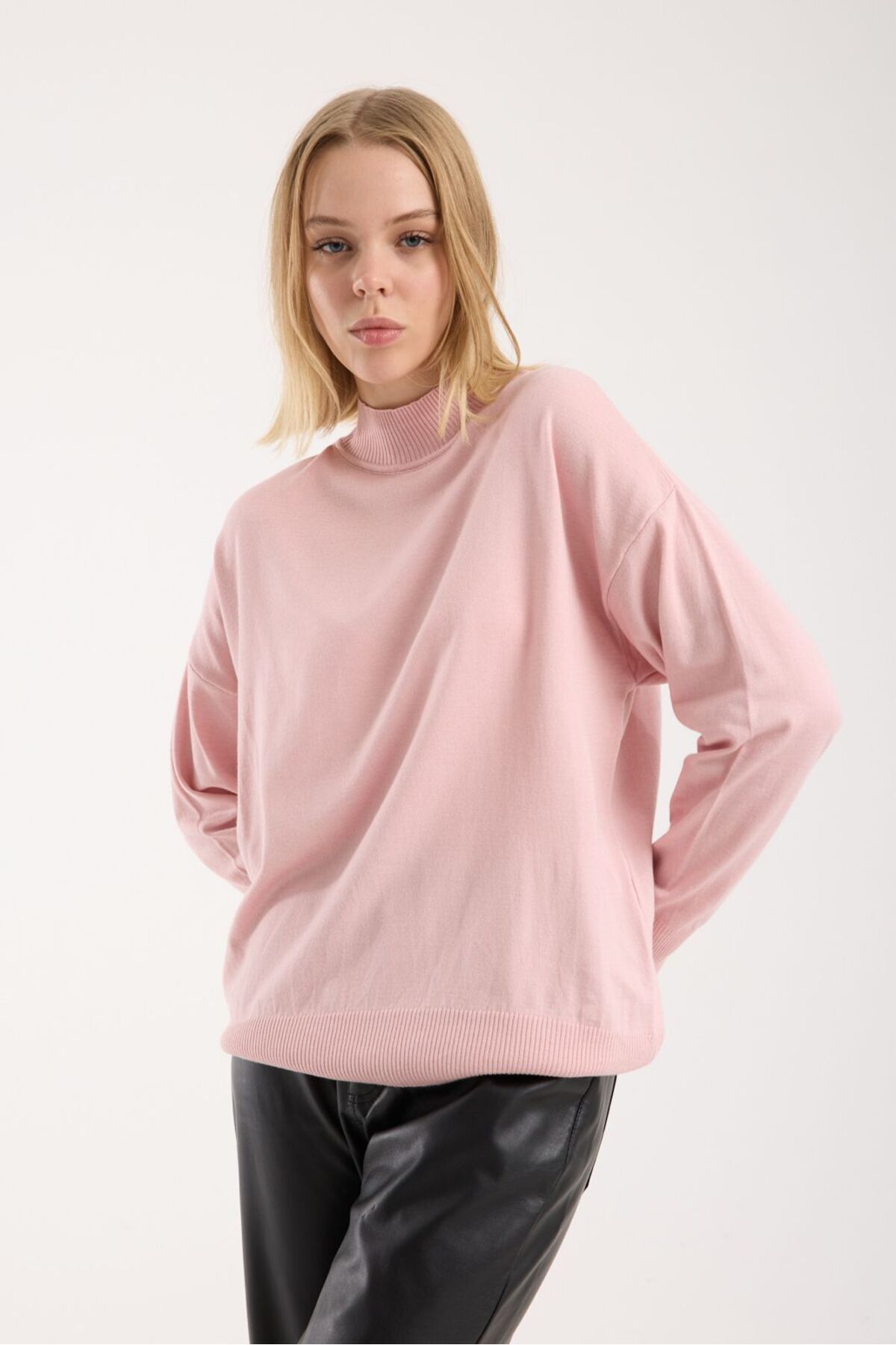Kadın triko kazak yumuşak doku dik yaka basic Kadın triko kazak yumuşak doku dik yaka basic 3522 Standart
