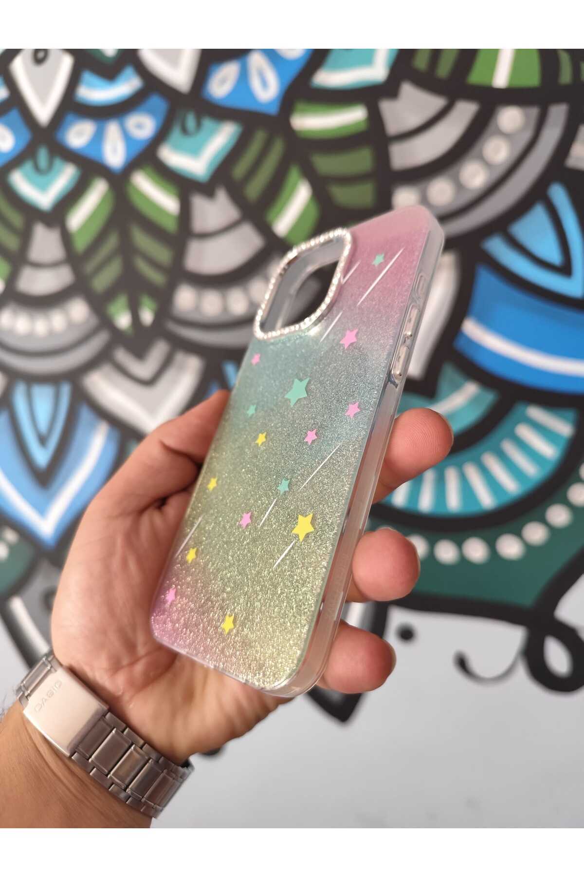 İphone 15 Pro Max Simli Taşlı Renkli Silikon Kılıf İphone 15 Pro Max Simli Taşlı Renkli Silikon Kılıf تک سایز