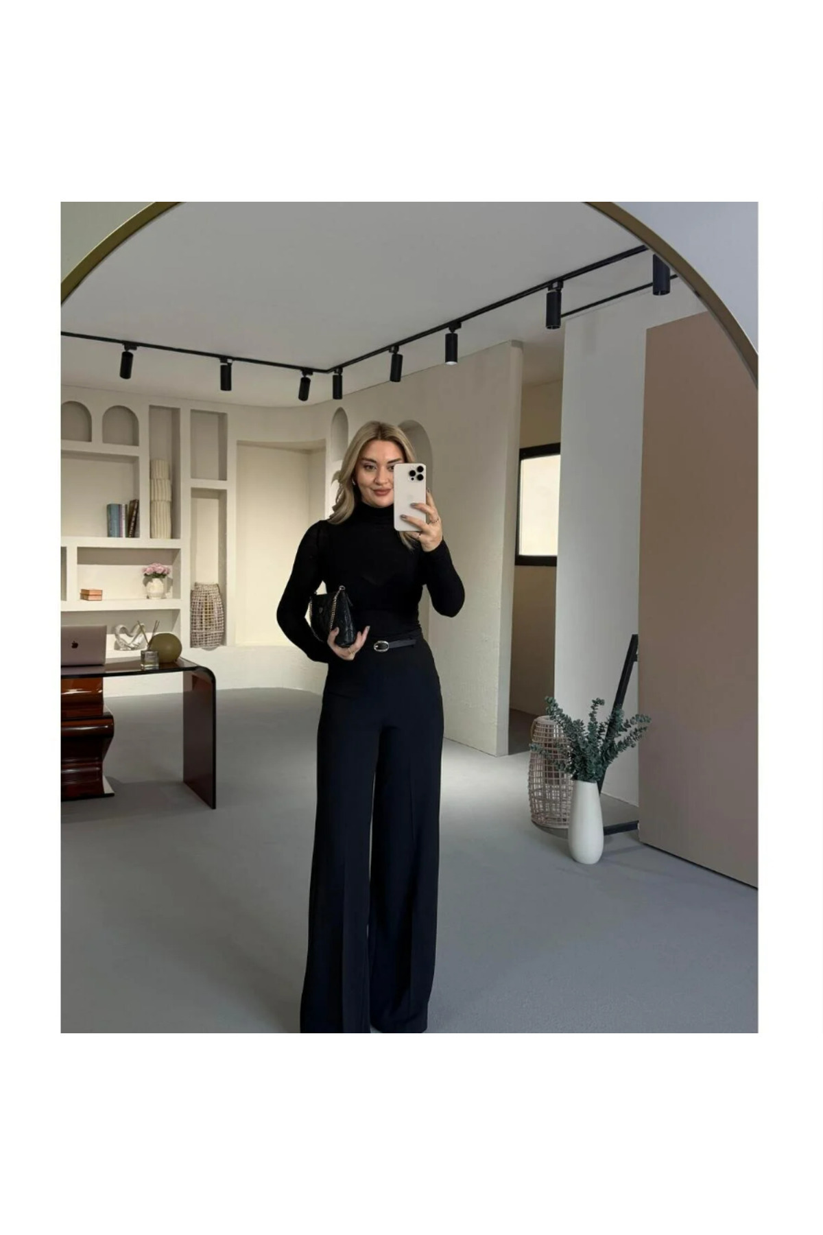 Kemerli Siyah Bol Pantolon Kemerli Siyah Bol Pantolon PNT-0578-SYH 42