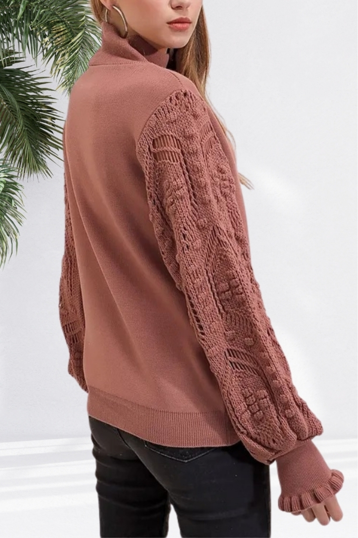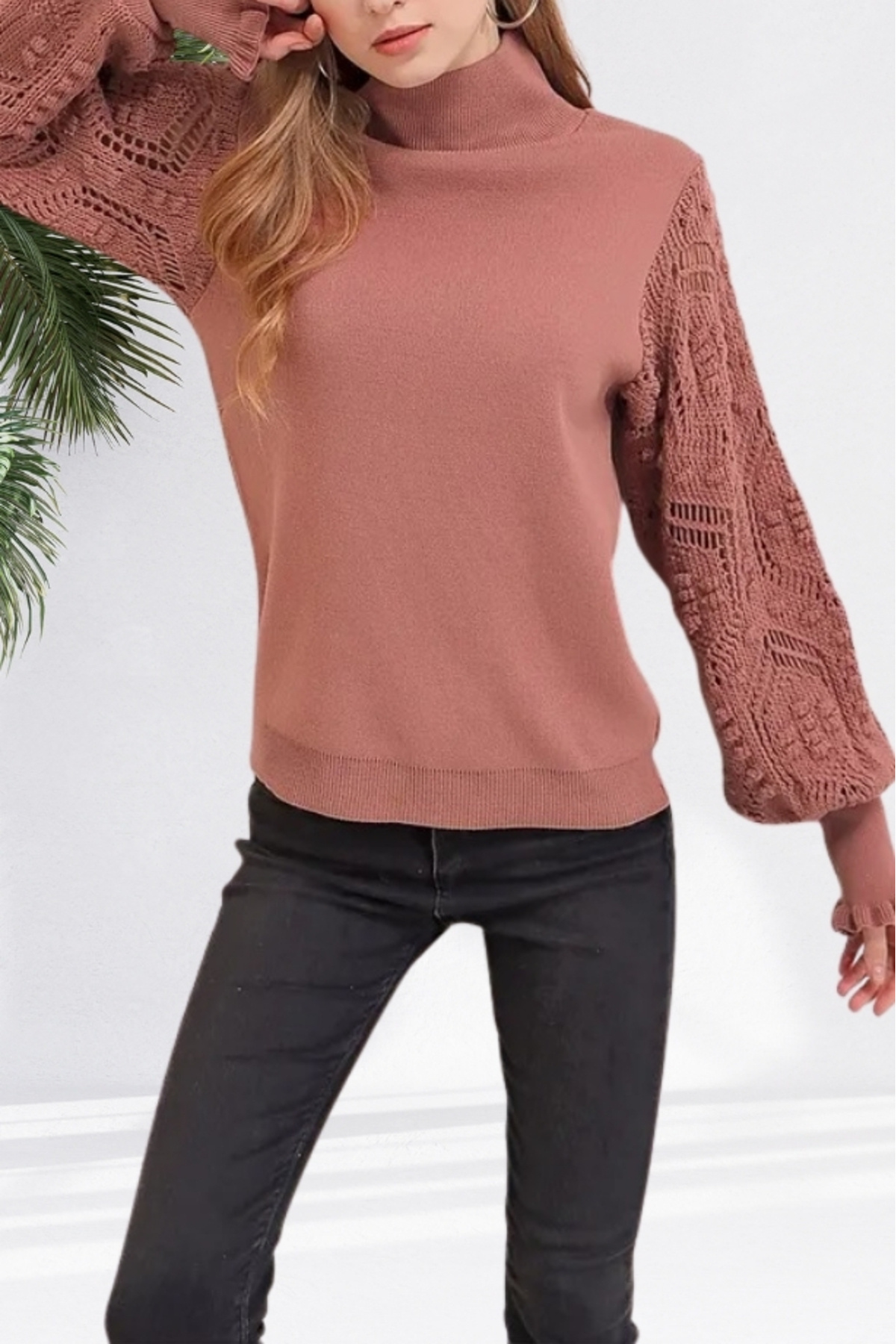 Kadın Tarçın Yarım Balıkçı Kolu Dantel Detaylı Kazak Kadın Tarçın Yarım Balıkçı Kolu Dantel Detaylı Kazak hnp-20417 XL