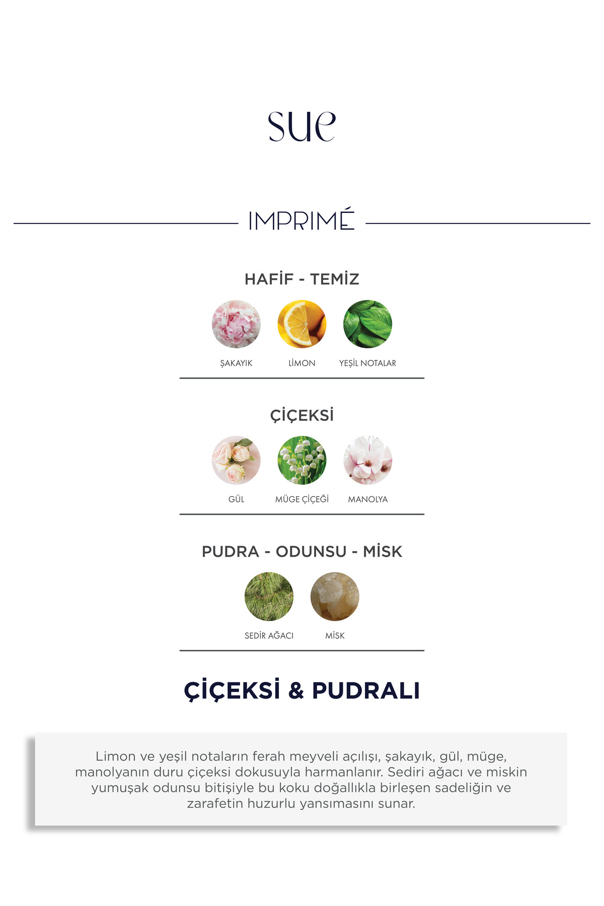 Sue EDP Kadın Parfüm 50ml | Çiçeksi & Pudralı | Şakayık, Limon, Gül, Müge, Manolya, Misk Sue EDP Kadın Parfüm 50ml | Çiçeksi & Pudralı | Şakayık, Limon, Gül, Müge, Manolya, Misk IMP0030 تک سایز