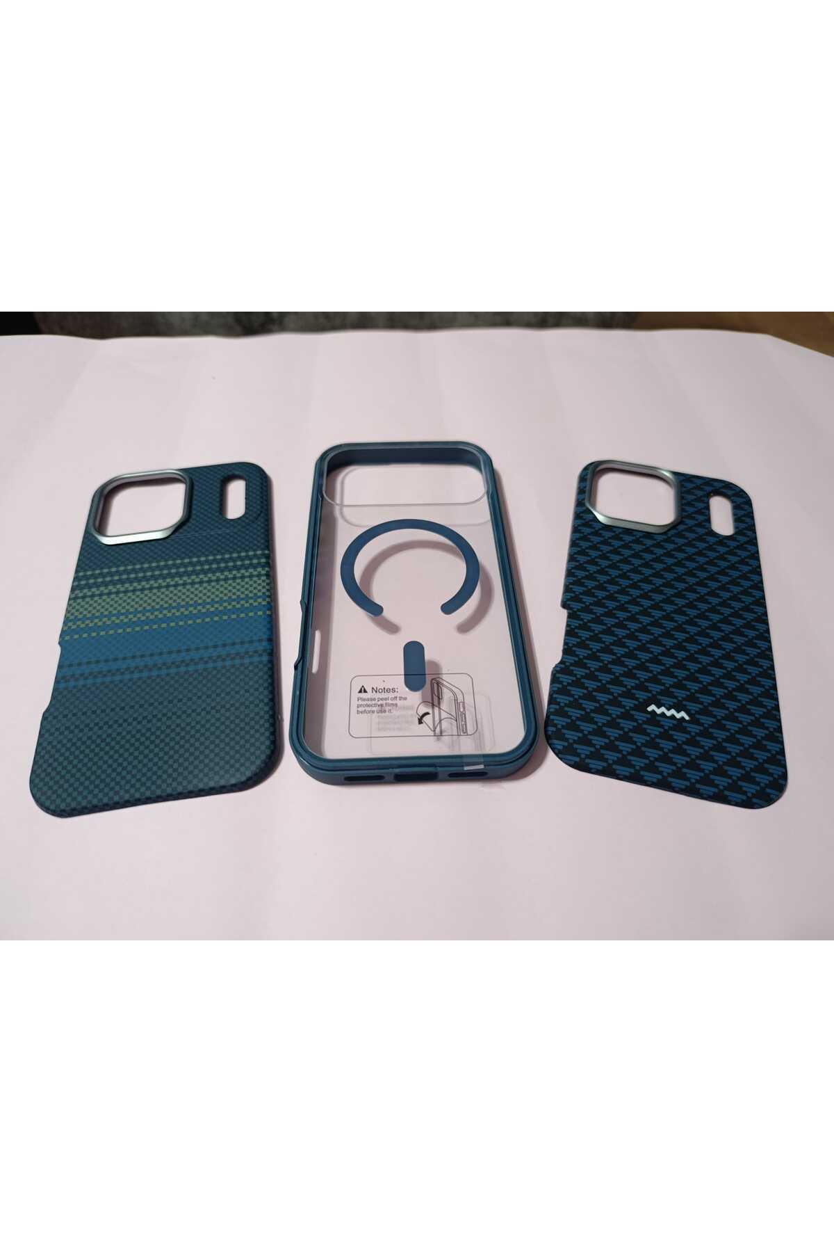 İphone 17 Pro Max 3'ü 1 Arada Magsafe Özellikli Kevlar Kaplama Lüx Koruyucu Kılıf İphone 17 Pro Max 3'ü 1 Arada Magsafe Özellikli Kevlar Kaplama Lüx Koruyucu Kılıf 17 pro max Keclar 3/1 تک سایز