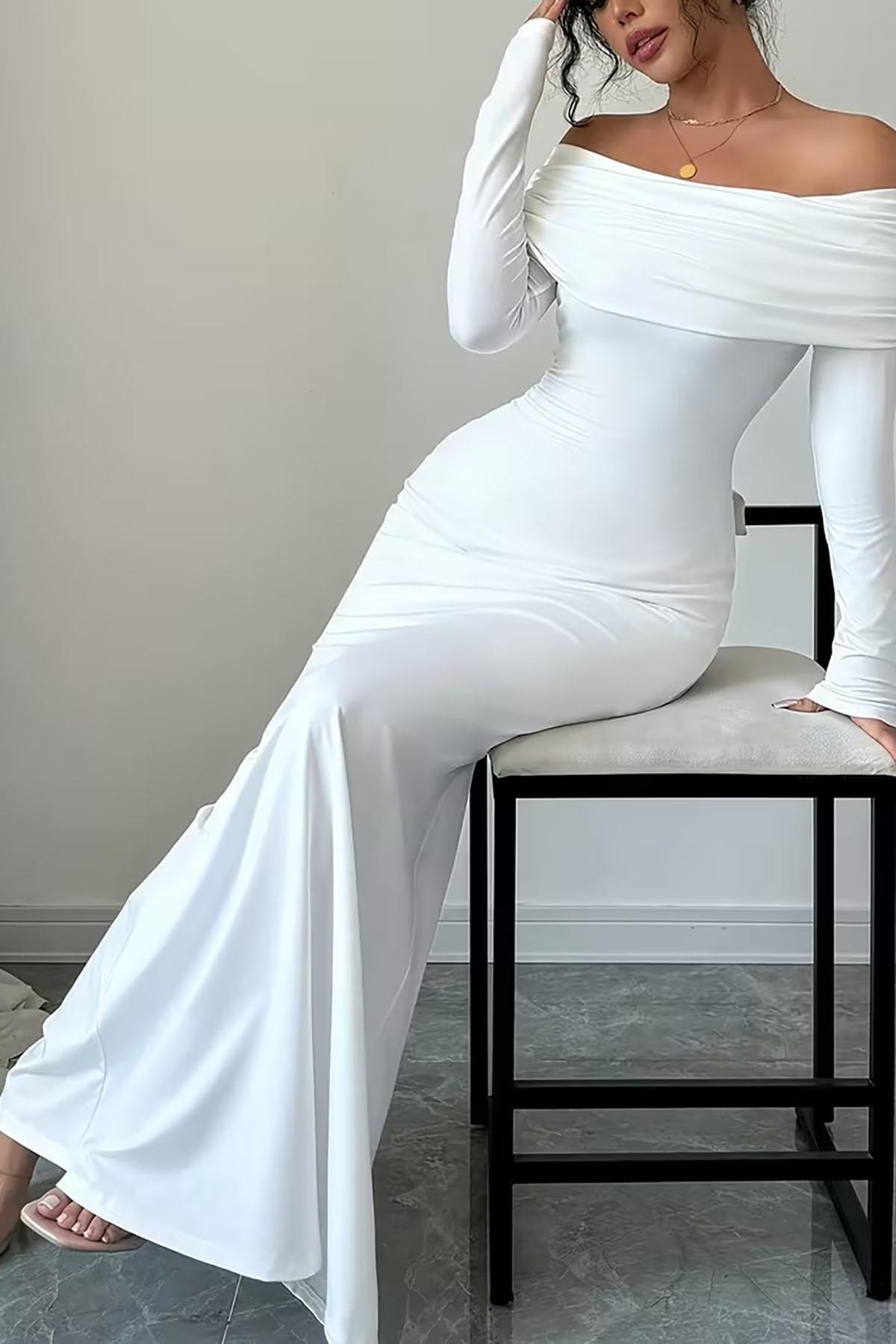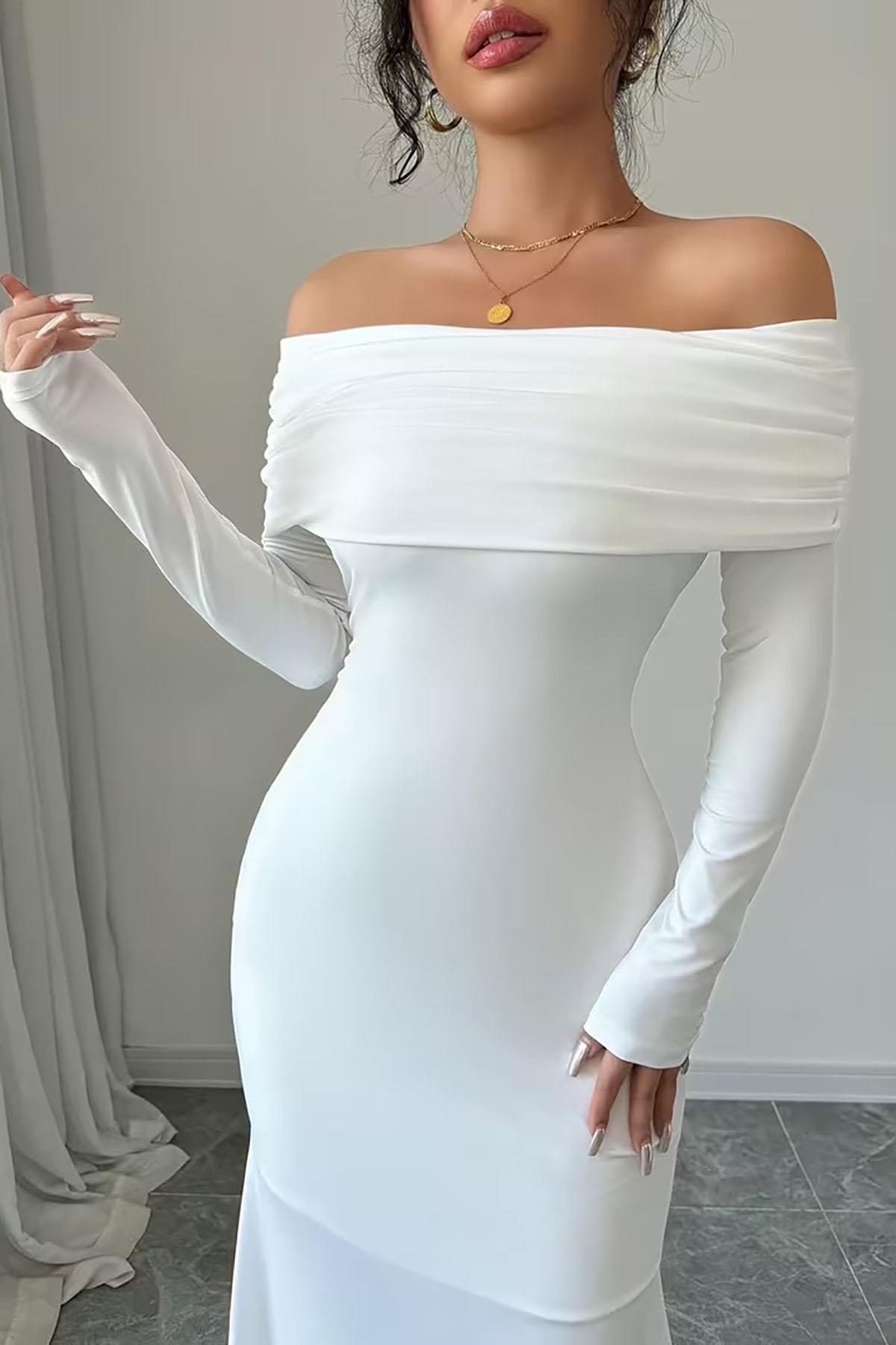 Beyaz Madonna Yaka Uzun Kollu Sırt Dekolteli Krep Kumaş Uzun Elbise Beyaz Madonna Yaka Uzun Kollu Sırt Dekolteli Krep Kumaş Uzun Elbise DFX394055 XL