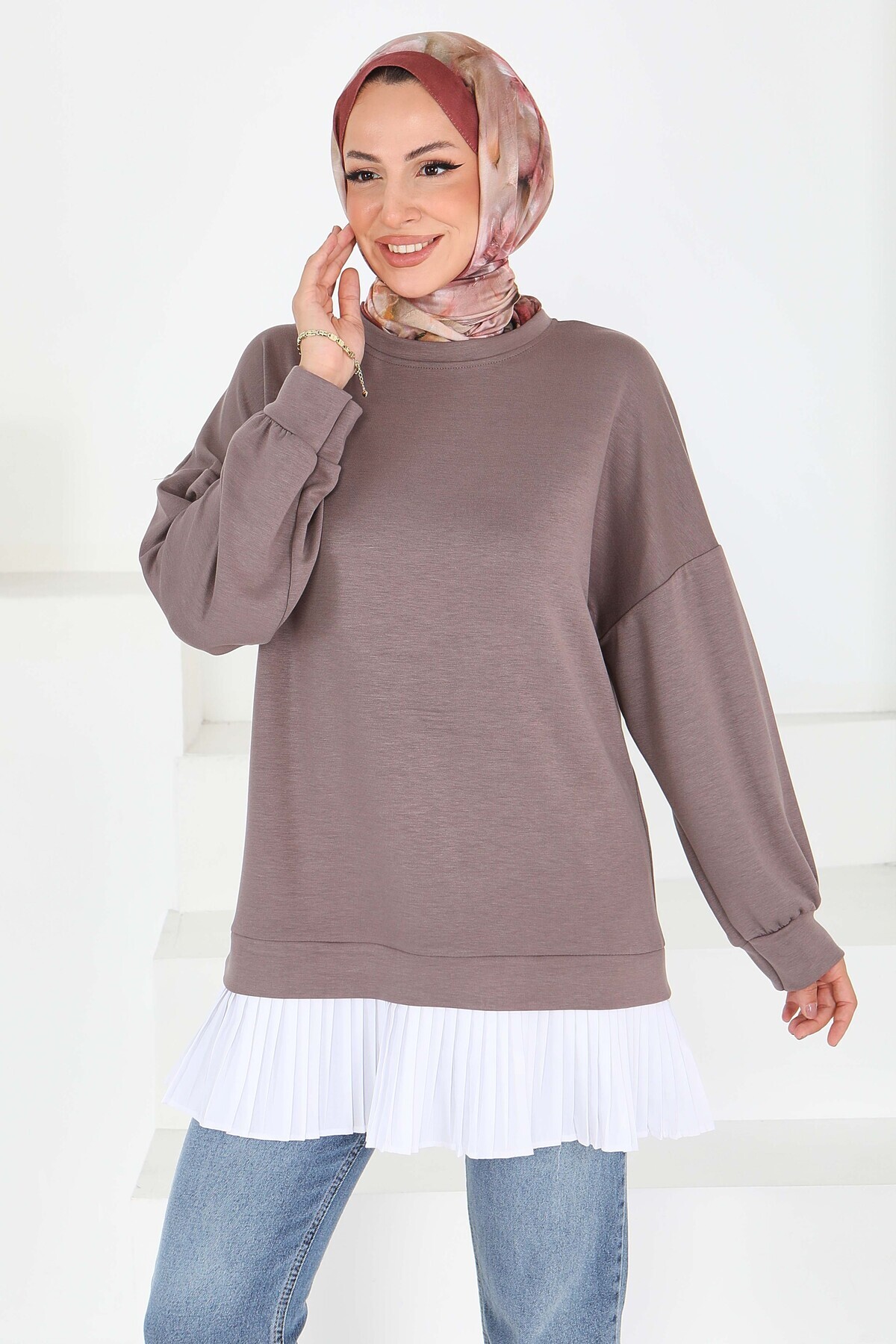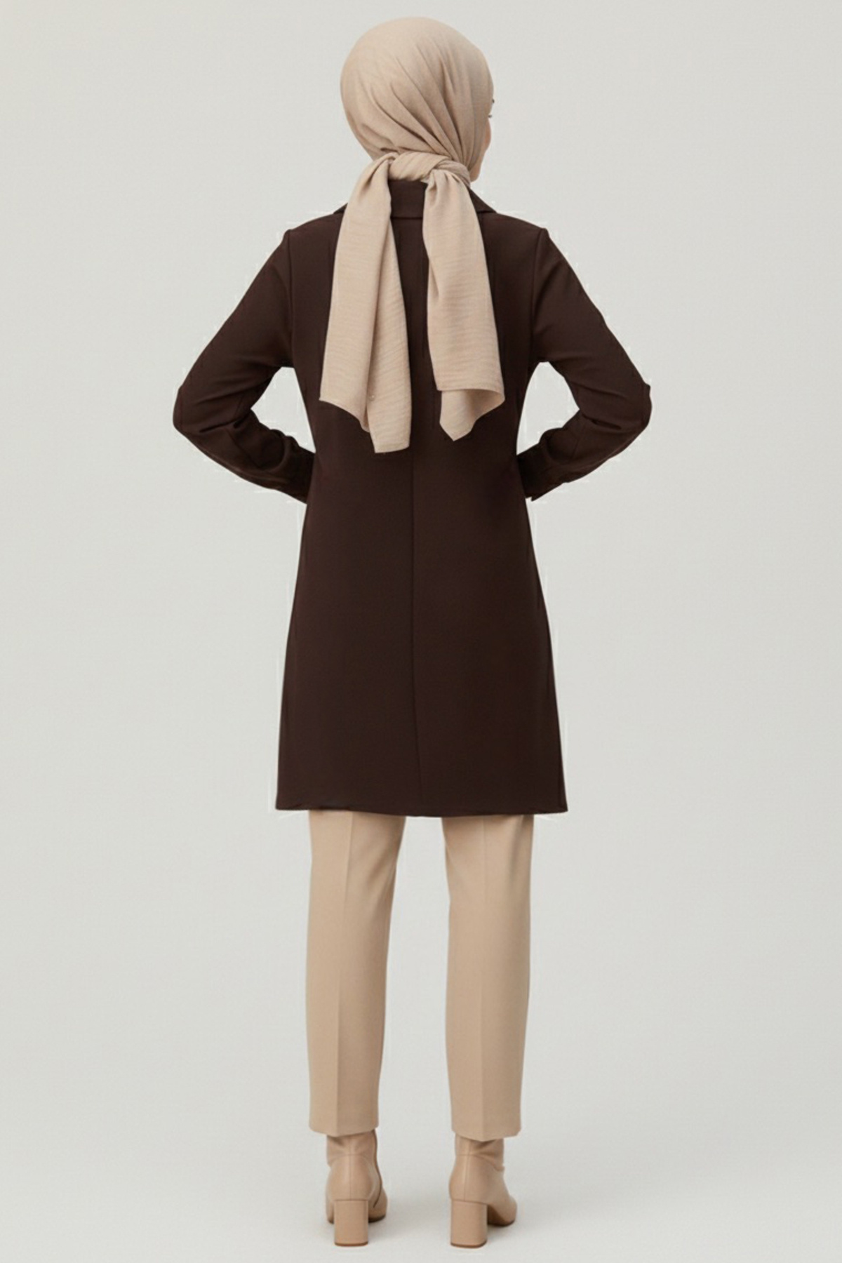 Düğme Detaylı Modal Tunik Kahve - 28041-KAHVE Düğme Detaylı Modal Tunik Kahve - 28041-KAHVE 2XL