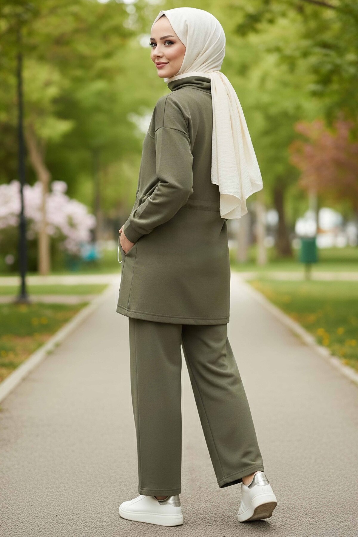 Belde Lastik Detaylı Fermuarlı Cepli Modal İkili Takım Haki - 28044-HAKI Belde Lastik Detaylı Fermuarlı Cepli Modal İkili Takım Haki - 28044-HAKI 2XL