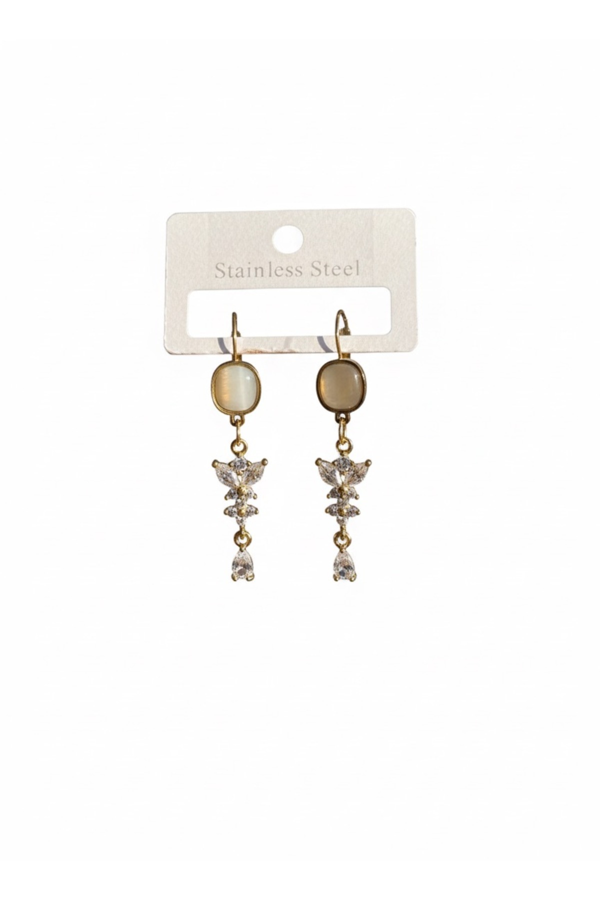 Zirkon Taşlı Mineli Çiçek Detaylı Sallantılı Çelik Küpe Zirkon Taşlı Mineli Çiçek Detaylı Sallantılı Çelik Küpe 52738 تک سایز