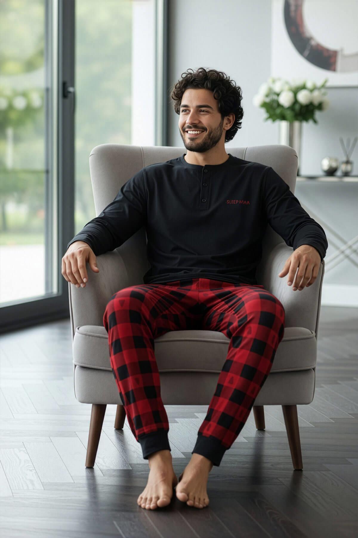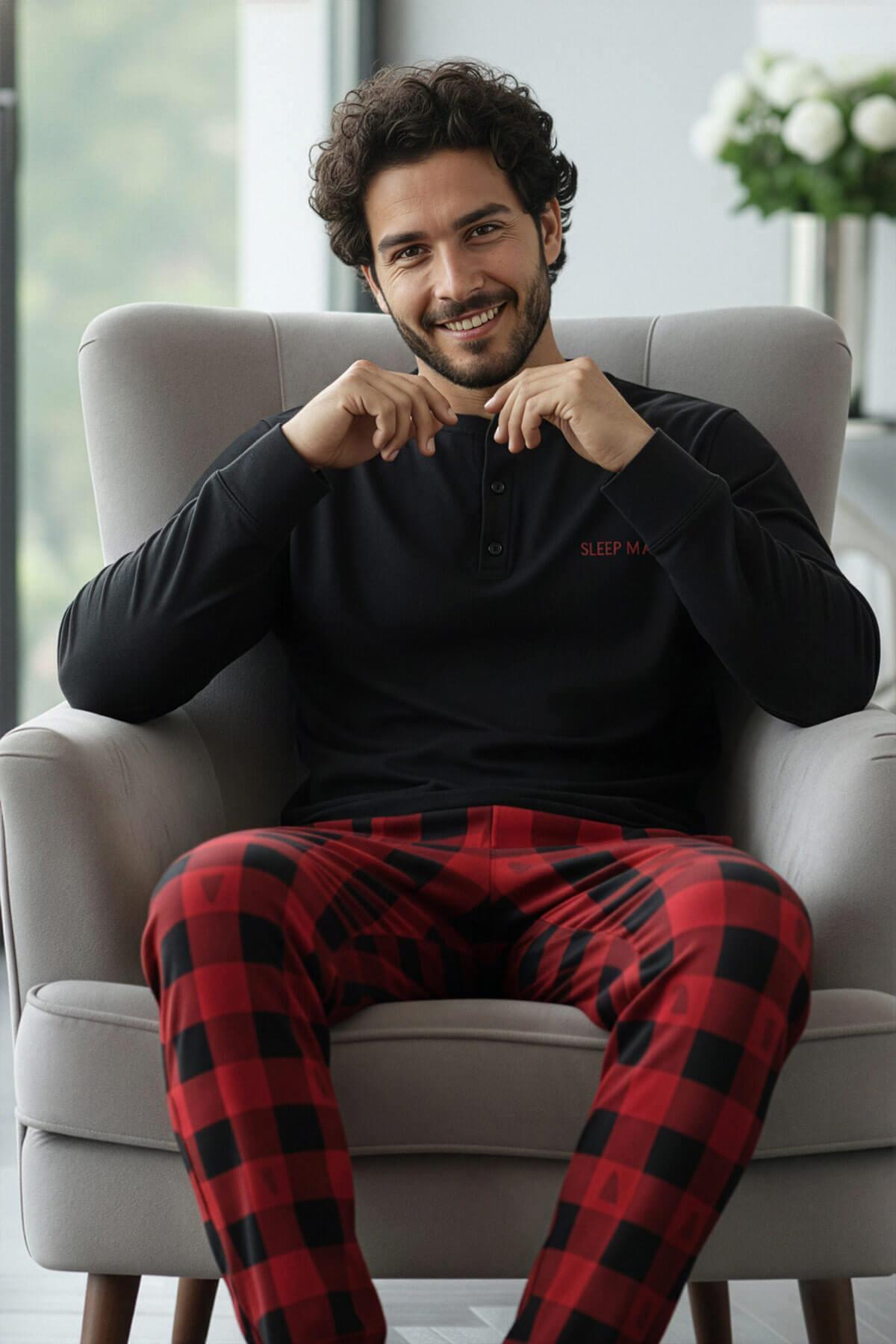 Siyah Sleep Man Desenli Stylish Erkek Uzun Kol Pijama Takımı Siyah Sleep Man Desenli Stylish Erkek Uzun Kol Pijama Takımı 5032 2XL