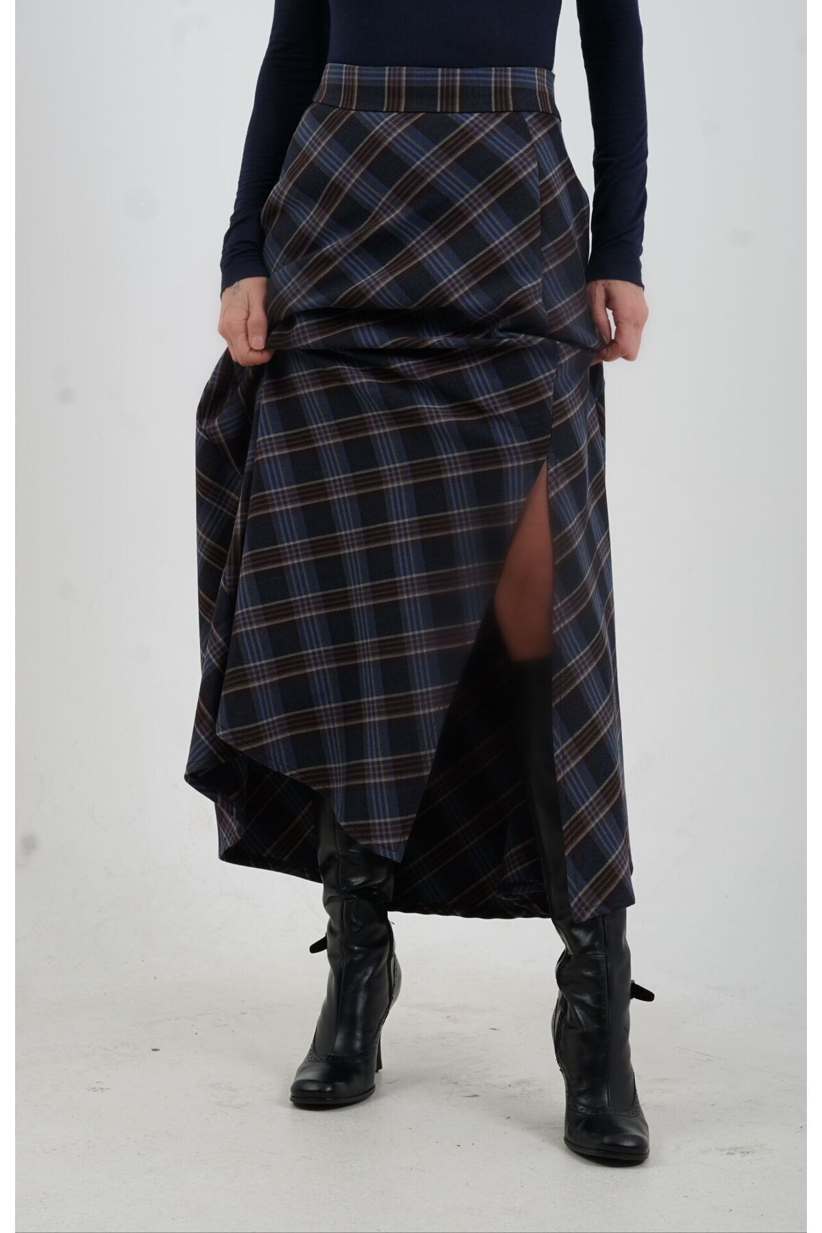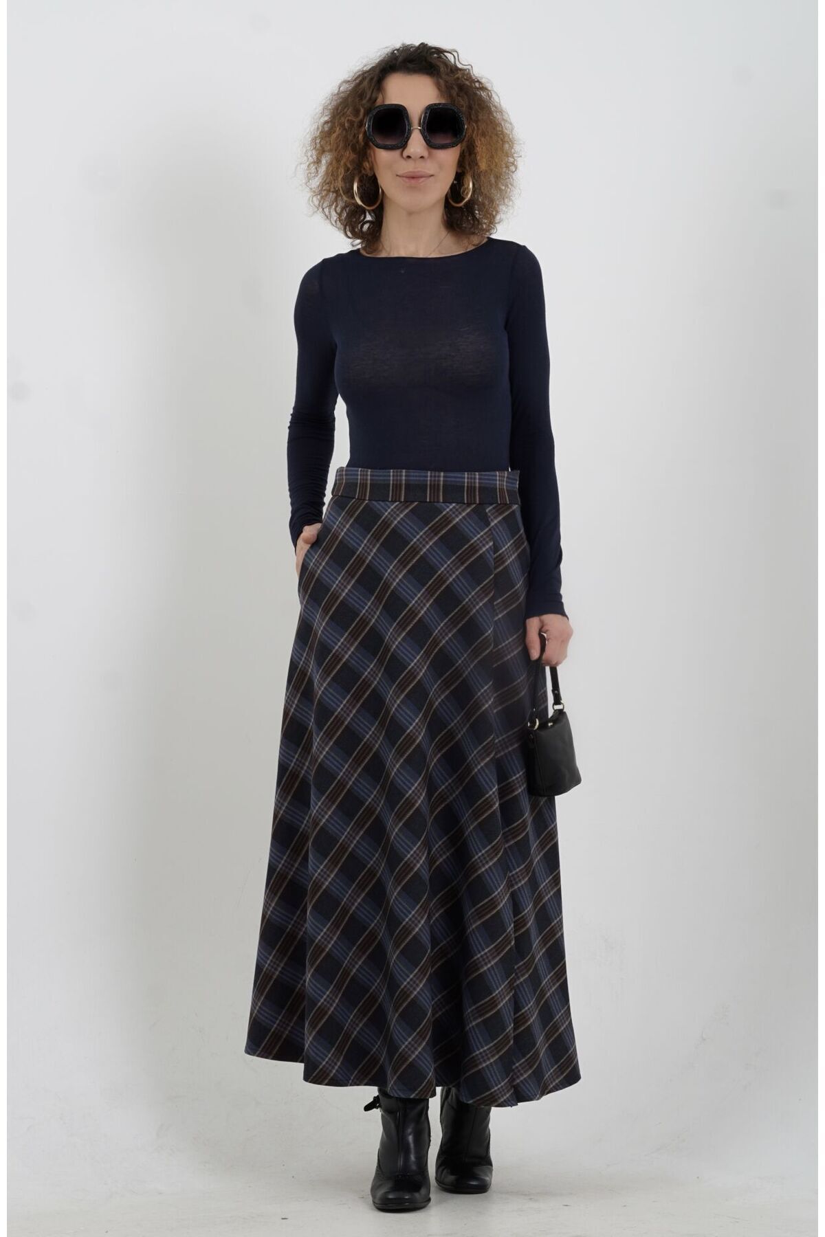 Lacivert Ekoseli Yırtmaçlı Etek Lacivert Ekoseli Yırtmaçlı Etek 120.ETK.0088 XL