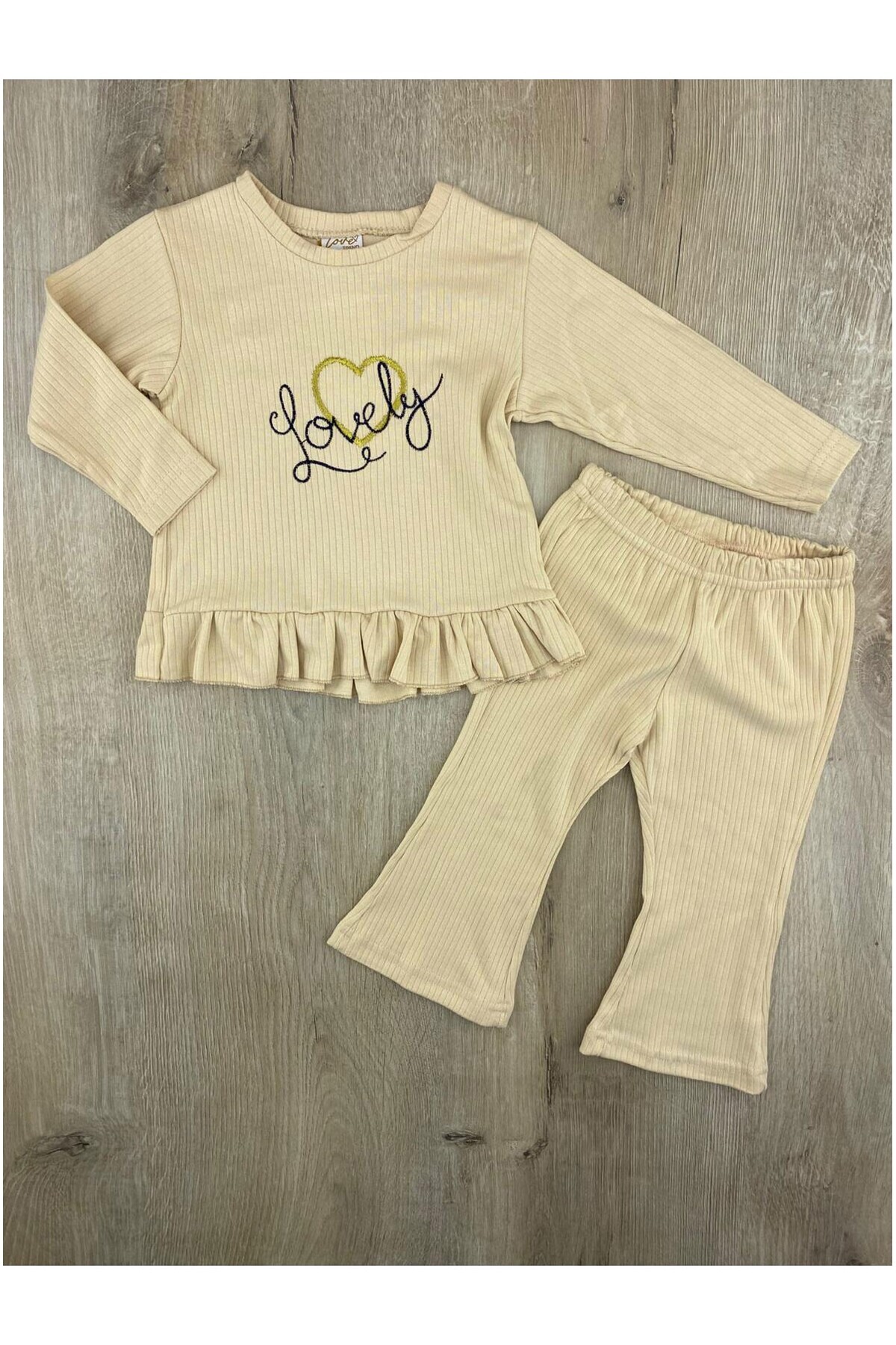 مشخصات فنی Max-Trd (3-6 Yaş) Simli Kurdale Desenli İspanyol Paça Mevsimlik Takım