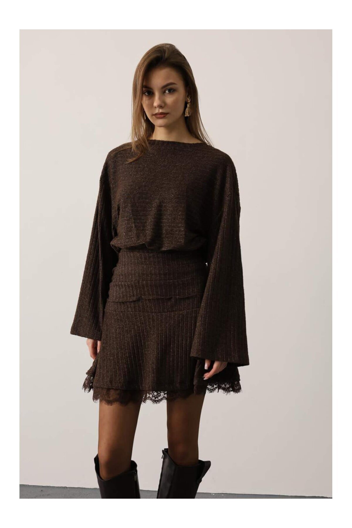 Eteği Tüllü Elbise 35527 Kahve Eteği Tüllü Elbise 35527 Kahve W25W-RYN-00035 L