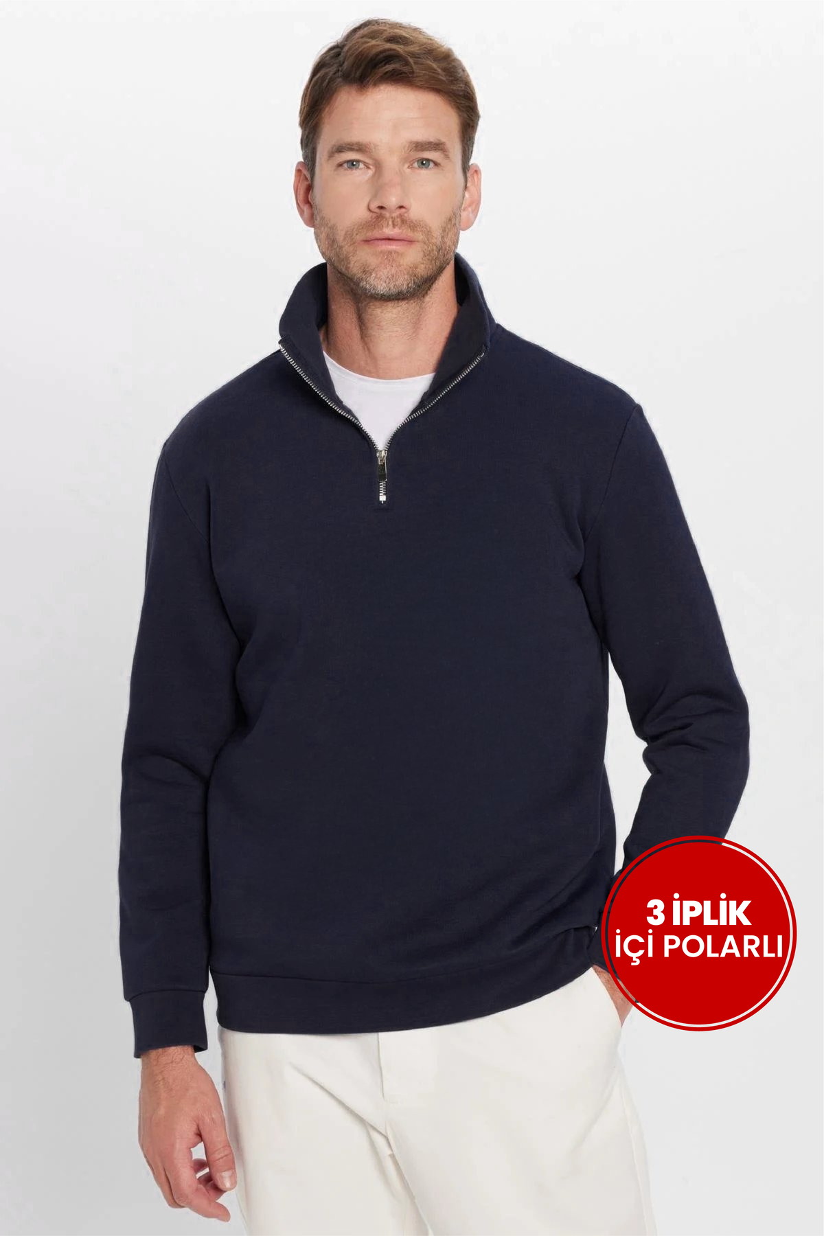 Erkek Relax Fit Rahat Kesim Pamuklu 3 İplik Fermuarlı Polo Yaka Gri Sweatshirt Erkek Relax Fit Rahat Kesim Pamuklu 3 İplik Fermuarlı Polo Yaka Gri Sweatshirt SW250037 2XL