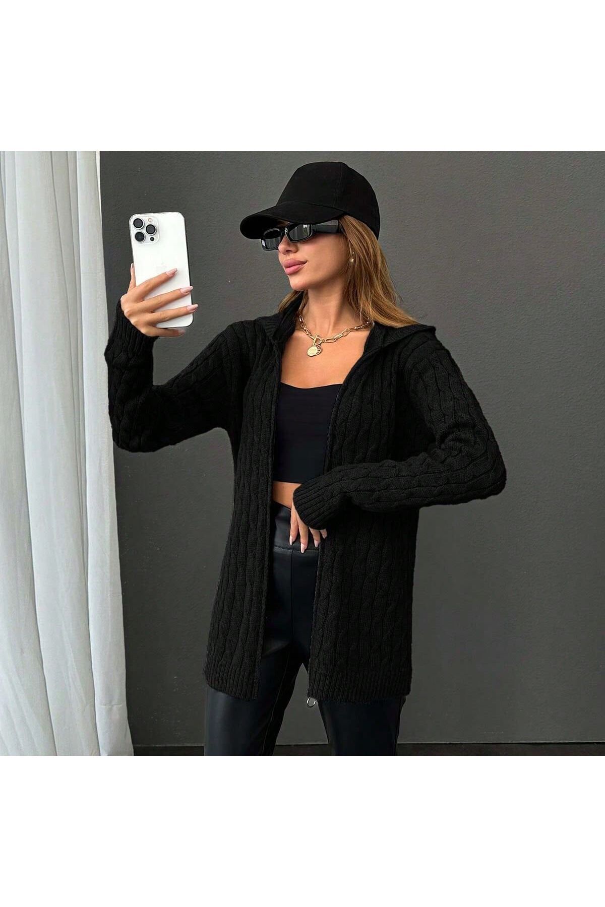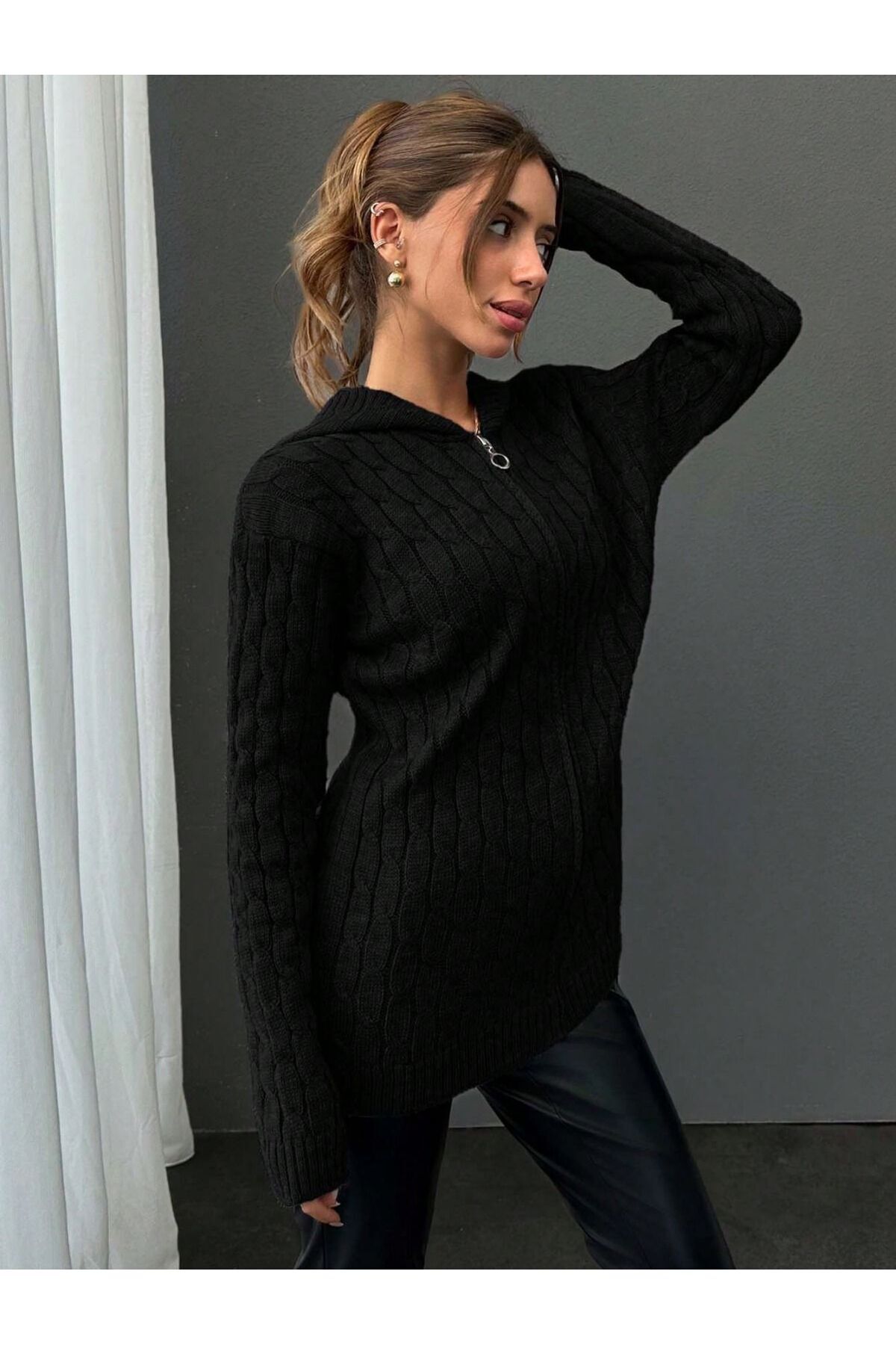 KADIN TRİKO KAPİŞONLU FERMUARLI HIRKA STANDART BEDEN KADIN TRİKO KAPİŞONLU FERMUARLI HIRKA STANDART BEDEN W52215BB Standart