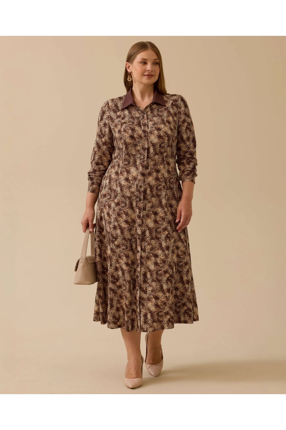 Kadın Desenli Boncuk Detaylı Saten Elbise - Kahverengi Kadın Desenli Boncuk Detaylı Saten Elbise - Kahverengi 10002521311005 44