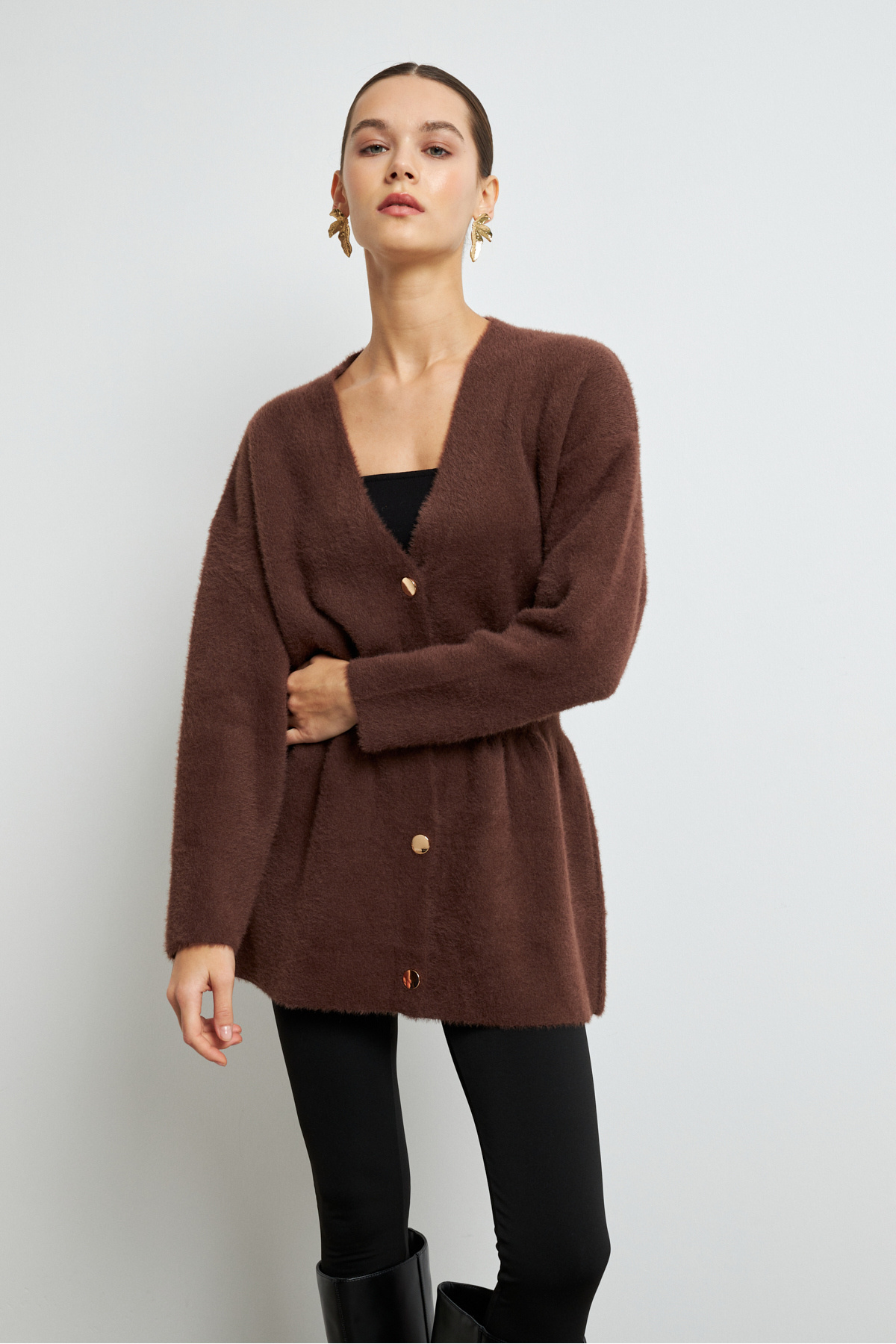 Kadın Siyah Gold Düğme Detaylı Soft Hırka Kadın Siyah Gold Düğme Detaylı Soft Hırka HIRKA001 Standart