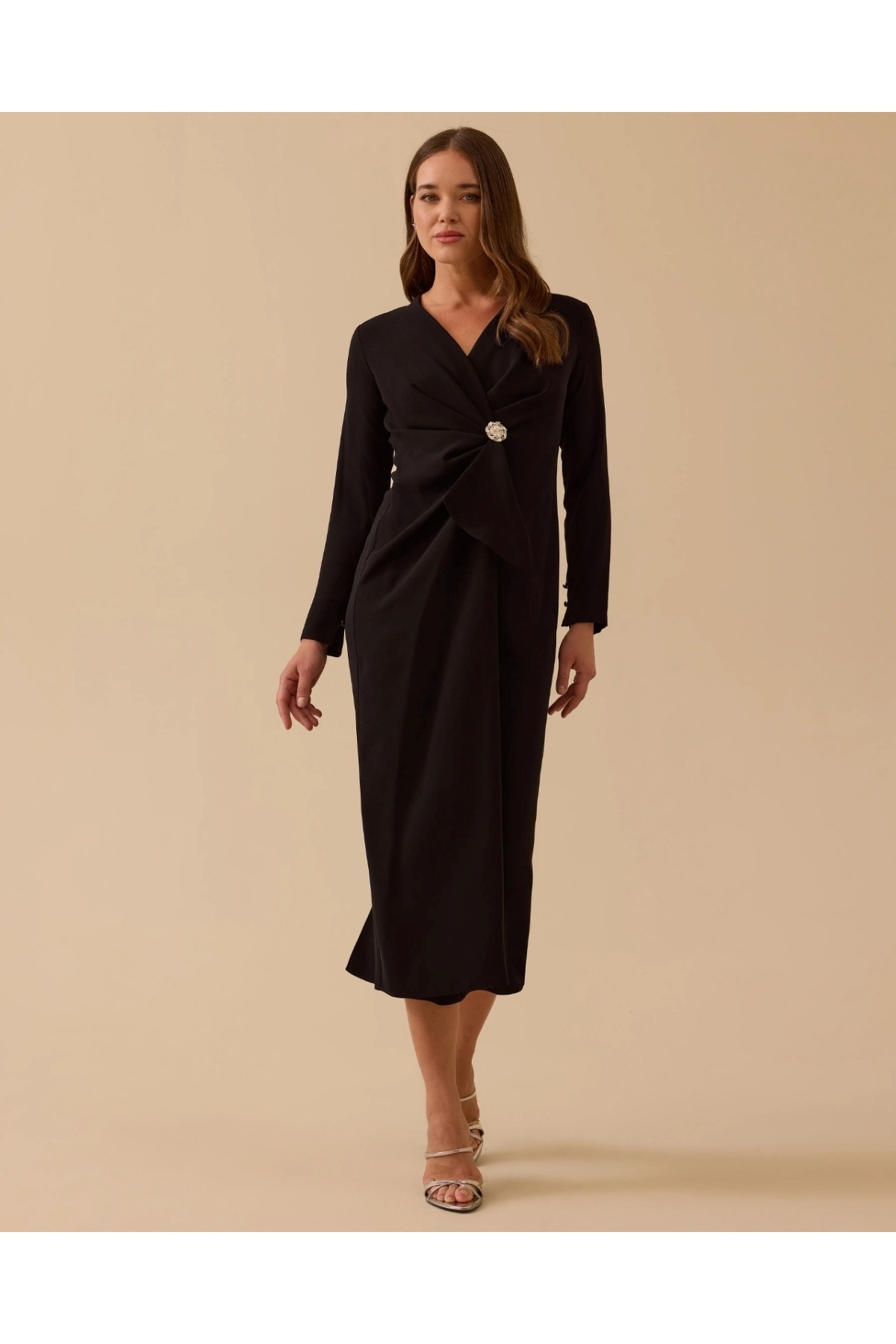 YENİ KADIN metal aksesuarlı drapeli elbise 10002521311028 YENİ KADIN metal aksesuarlı drapeli elbise 10002521311028 P143387S7333 L
