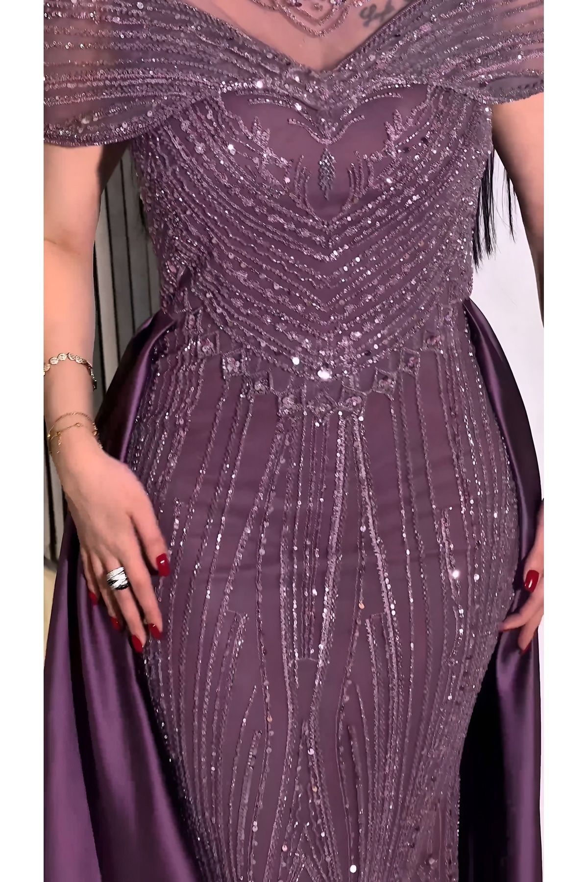 Tül ve Taş Şeritli Omuz Detaylı Geometrik İşlemeli Saten Kuyruklu Balık Abiye Tül ve Taş Şeritli Omuz Detaylı Geometrik İşlemeli Saten Kuyruklu Balık Abiye 990528 50