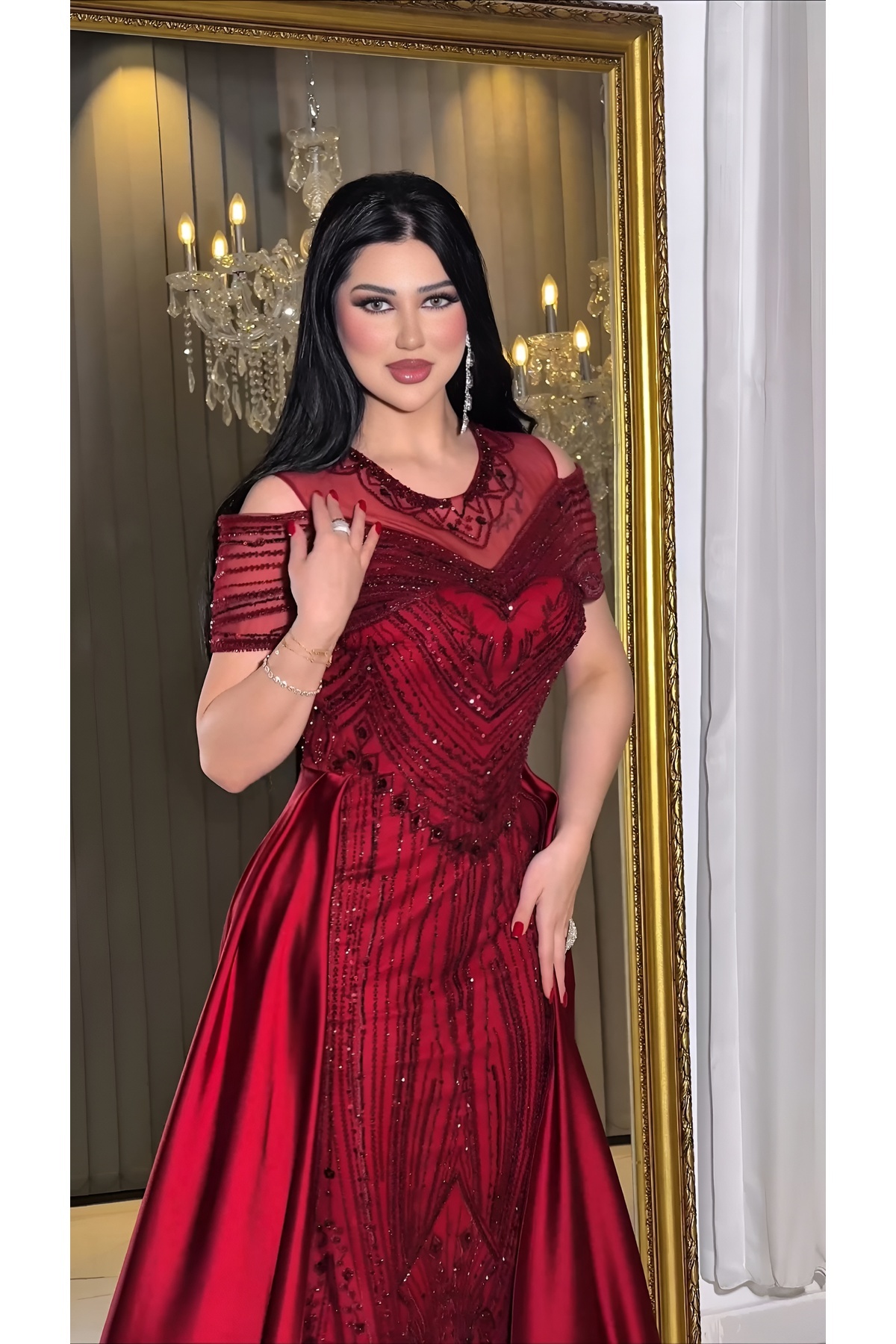 Tül ve Taş Şeritli Omuz Detaylı Geometrik İşlemeli Saten Kuyruklu Balık Abiye Tül ve Taş Şeritli Omuz Detaylı Geometrik İşlemeli Saten Kuyruklu Balık Abiye 990528 50