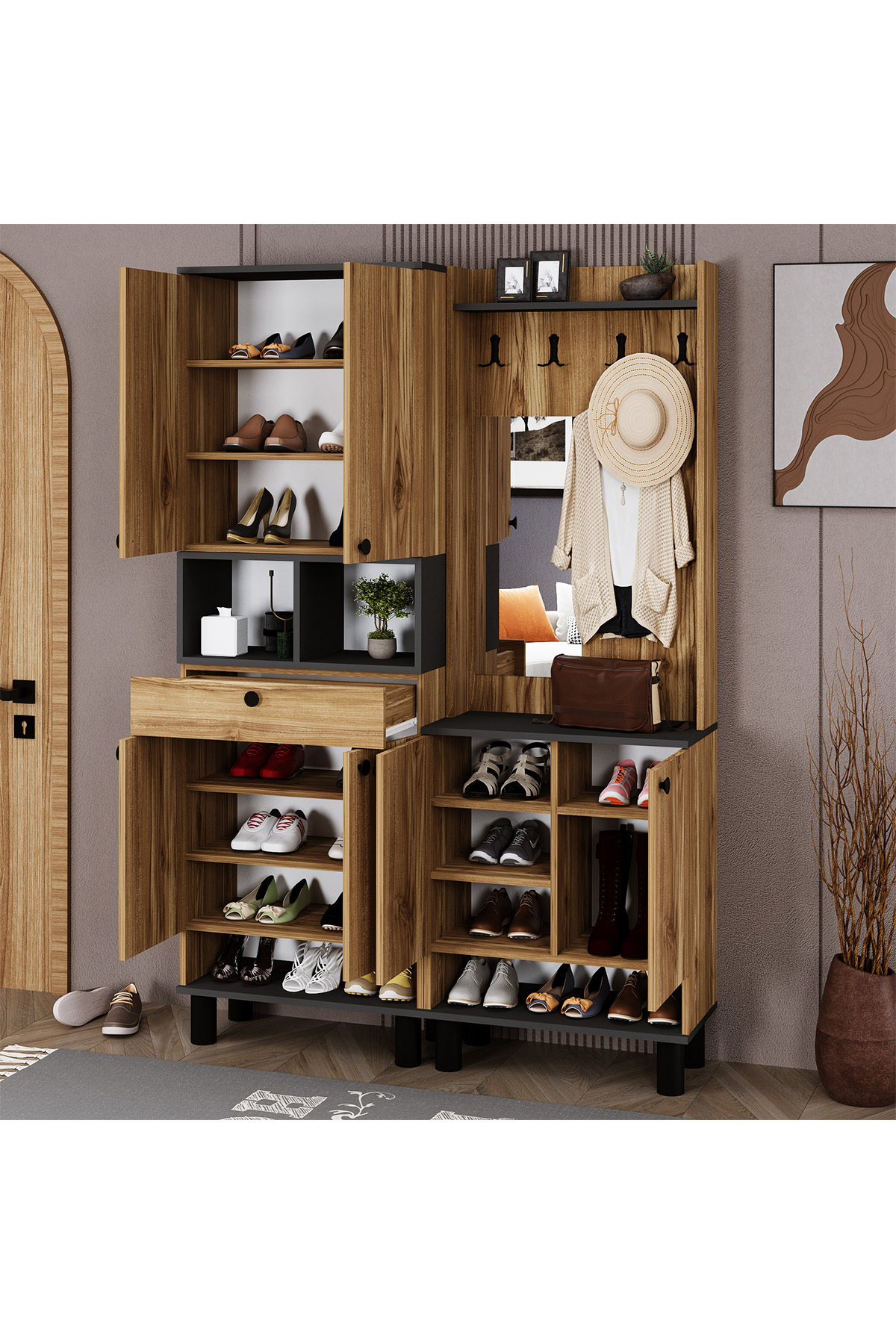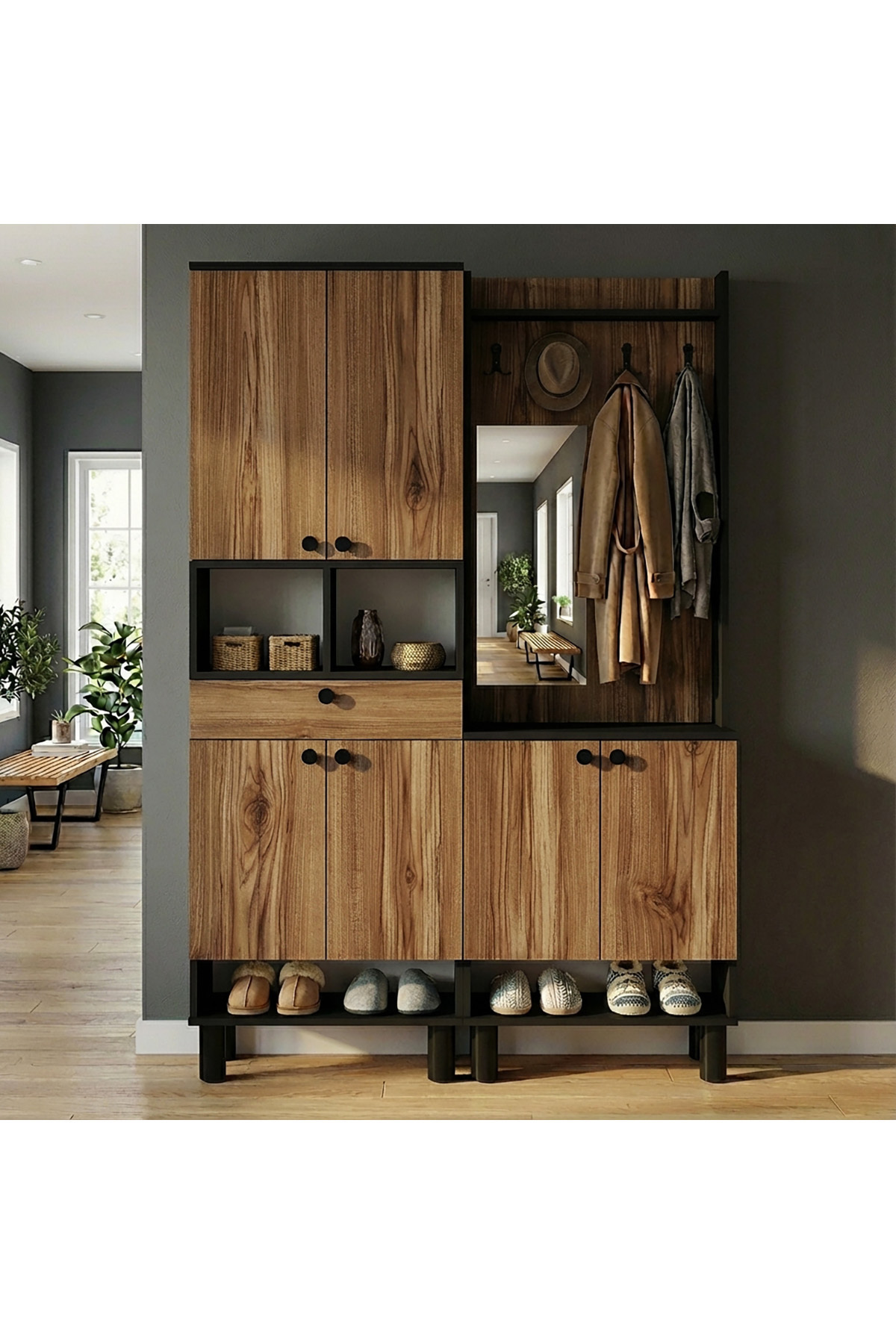 Ebru-1-2 Bohem Ayaklı Çekmeceli Aynalı Ayakkabılık Portmanto Vestiyer Ebru-1-2 Bohem Ayaklı Çekmeceli Aynalı Ayakkabılık Portmanto Vestiyer EBRU-1-2 تک سایز