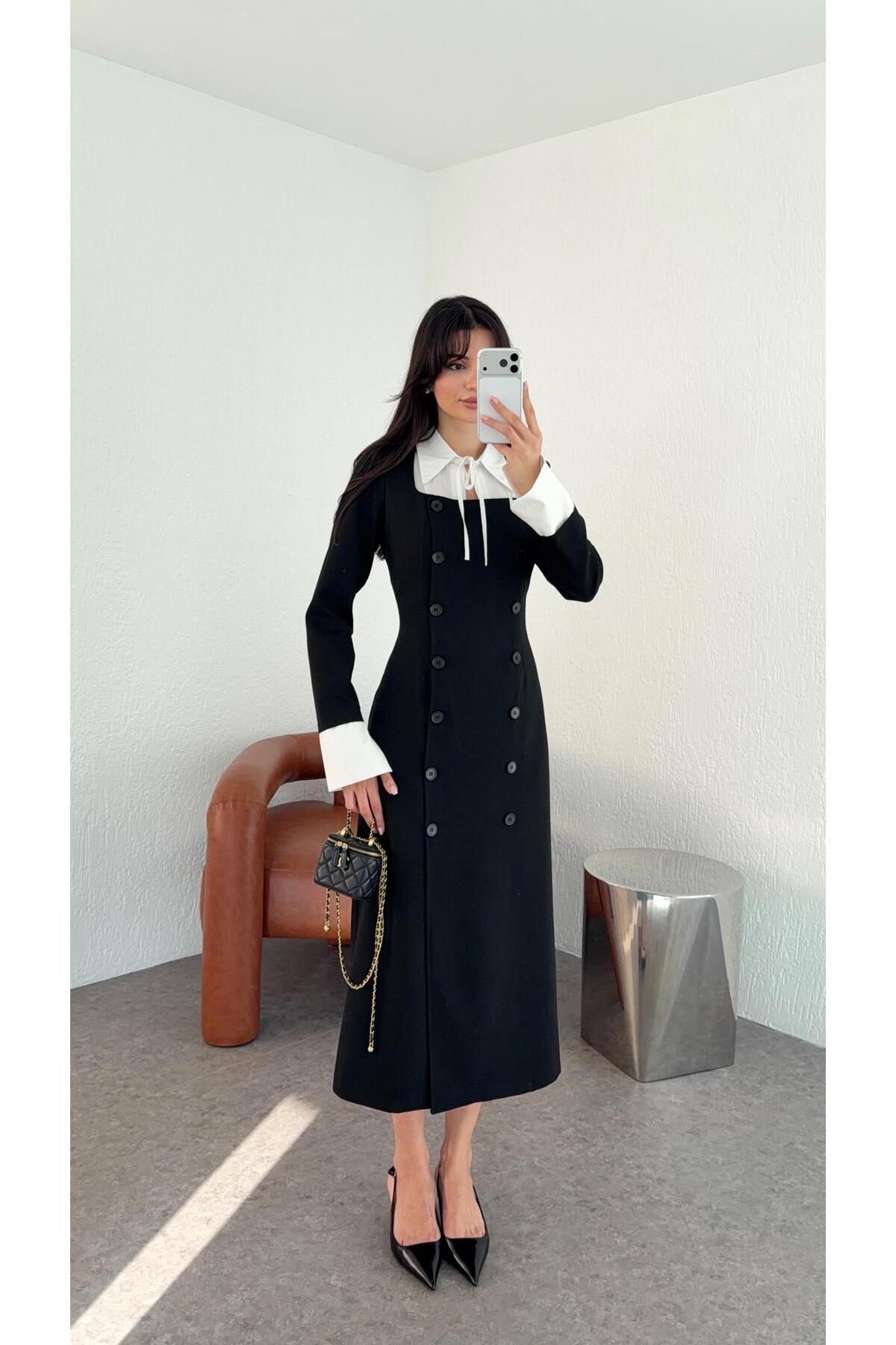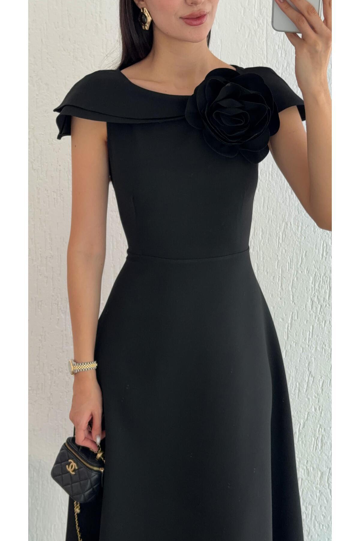 Seyyar Broşlu Siyah Elbise Seyyar Broşlu Siyah Elbise 12589 XL