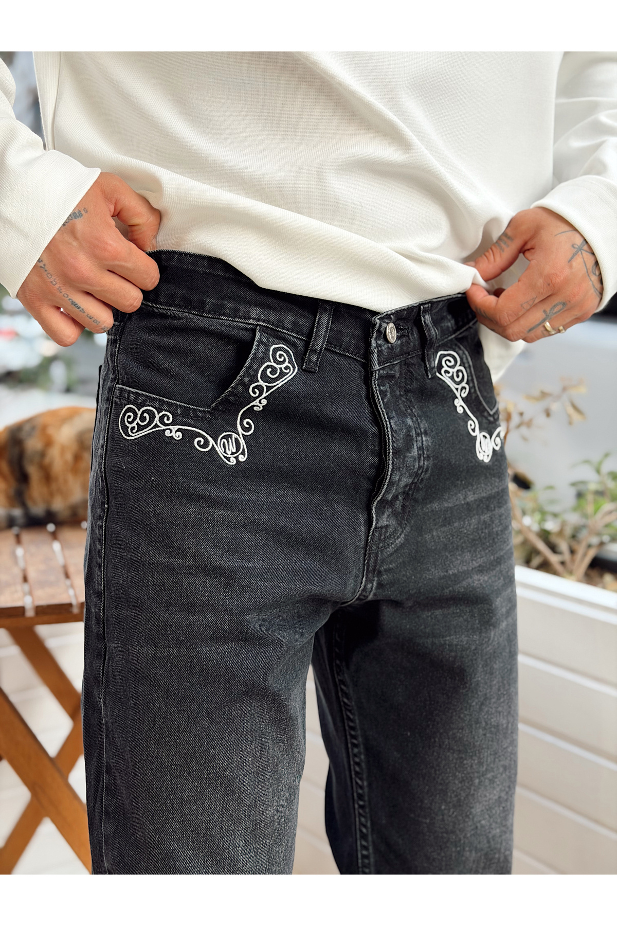 Cep Nakışlı Regular Kalıp Kot Pantolon Siyah Cep Nakışlı Regular Kalıp Kot Pantolon Siyah MP4122 XL