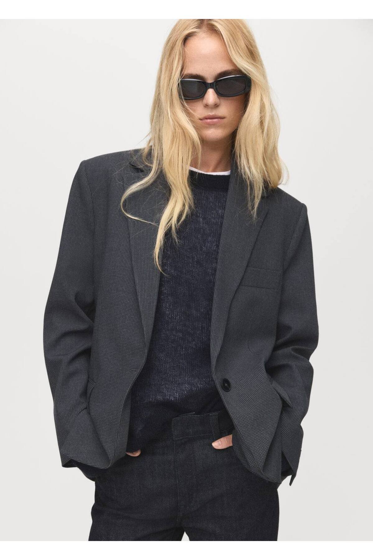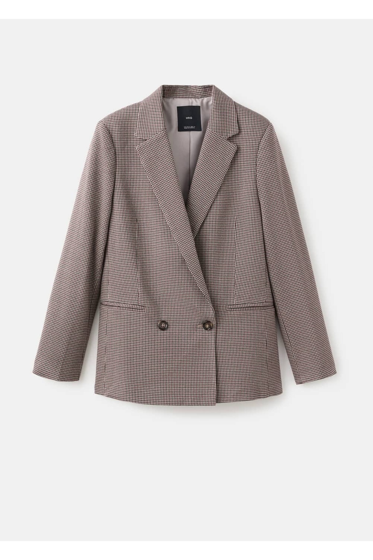 Mikro kazayağı desenli çift düğmeli blazer ceket Mikro kazayağı desenli çift düğmeli blazer ceket 27091259 58