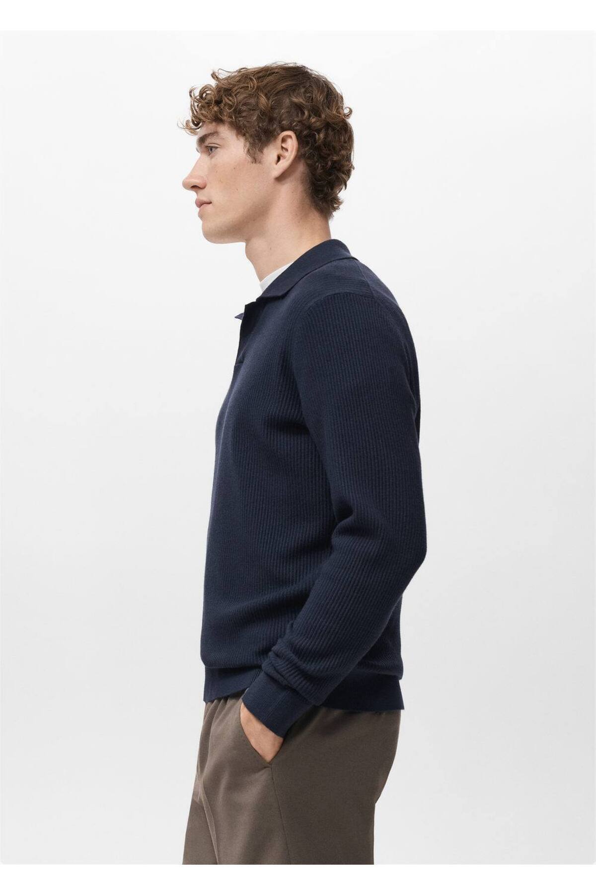 Fitilli pamuk karışımlı polo kazak Fitilli pamuk karışımlı polo kazak 27051282 2XL