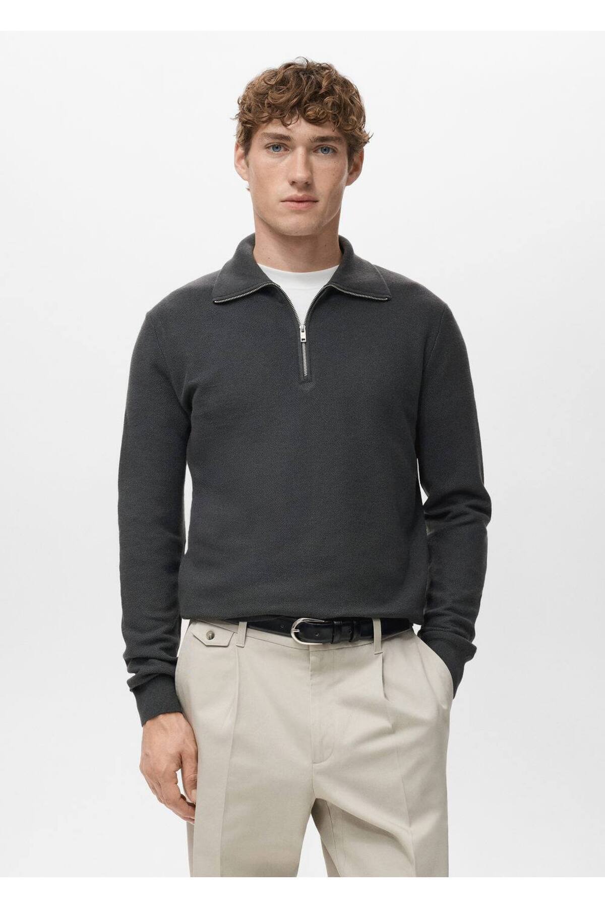 Fitilli pamuk karışımlı polo kazak Fitilli pamuk karışımlı polo kazak 27051282 2XL