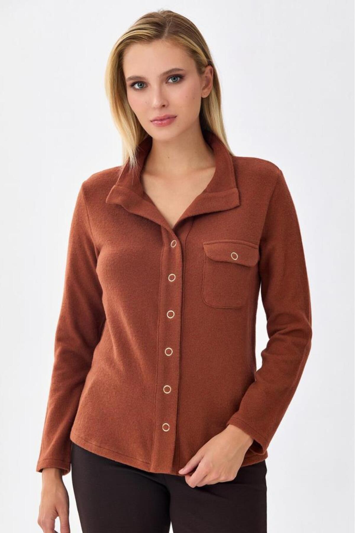 مشخصات فنی Önü Çıtçıtlı Cep Detaylı Uzun Kol Triko Bluz 256-1706