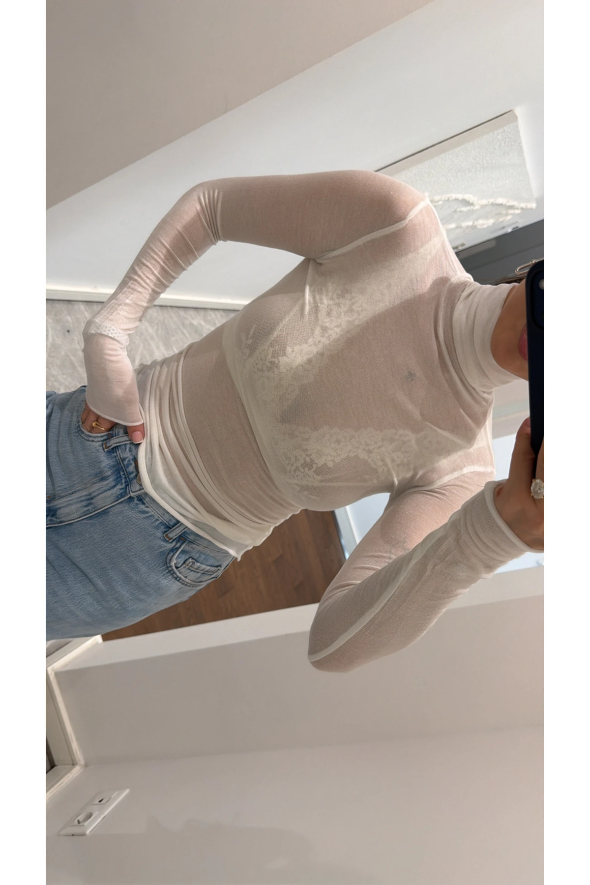 Kadın Dik Yaka Transparan Esnek Vücuda Oturan Örme Bluz Kadın Dik Yaka Transparan Esnek Vücuda Oturan Örme Bluz tr1903 L