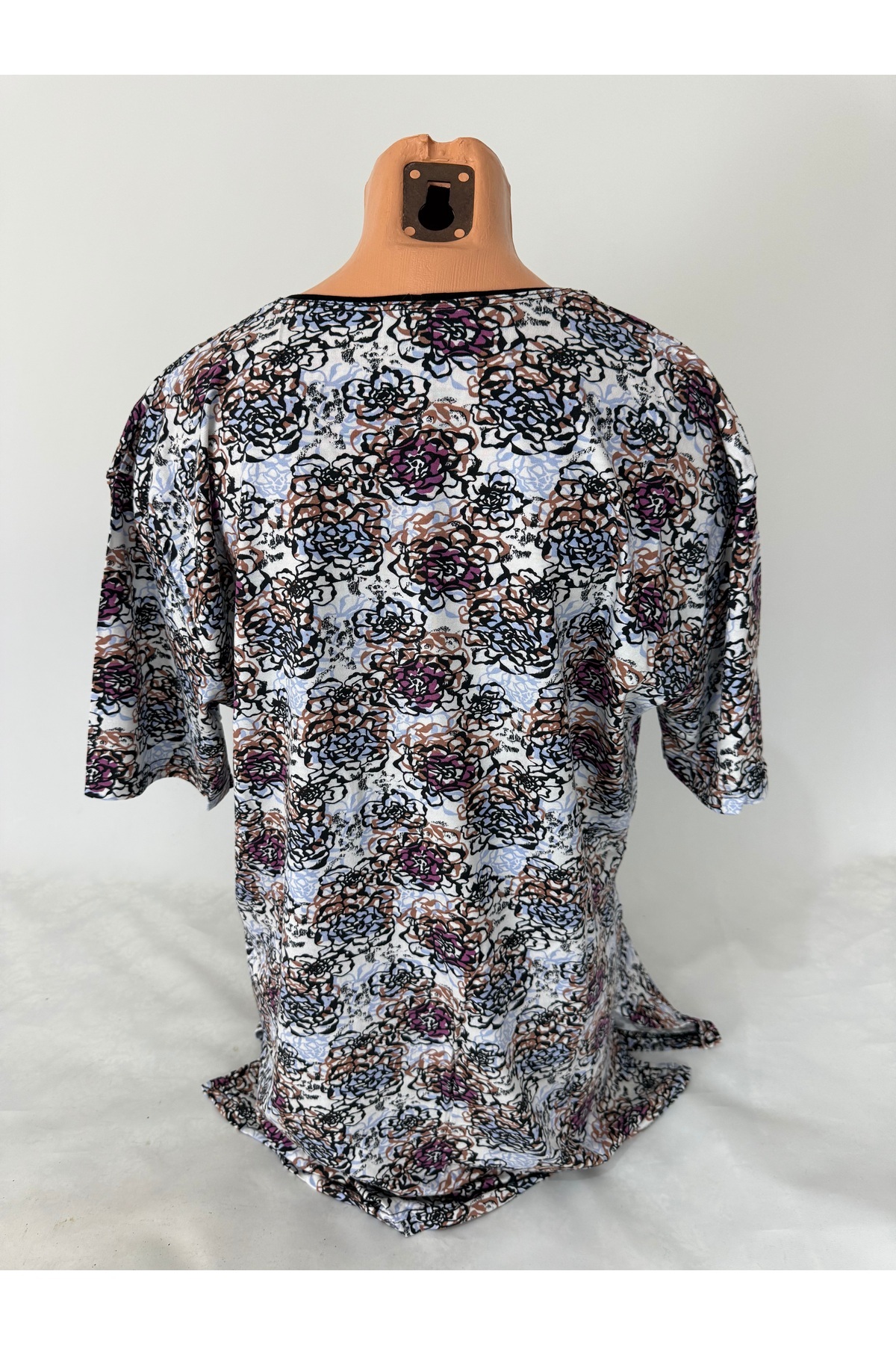 Kadın Beyaz U Yaka Kısa Kollu Çiçek Desenli Yırtmaçlı Dokuma Viskon Anne Penye Tişört Kadın Beyaz U Yaka Kısa Kollu Çiçek Desenli Yırtmaçlı Dokuma Viskon Anne Penye Tişört RLY-2701 4XL