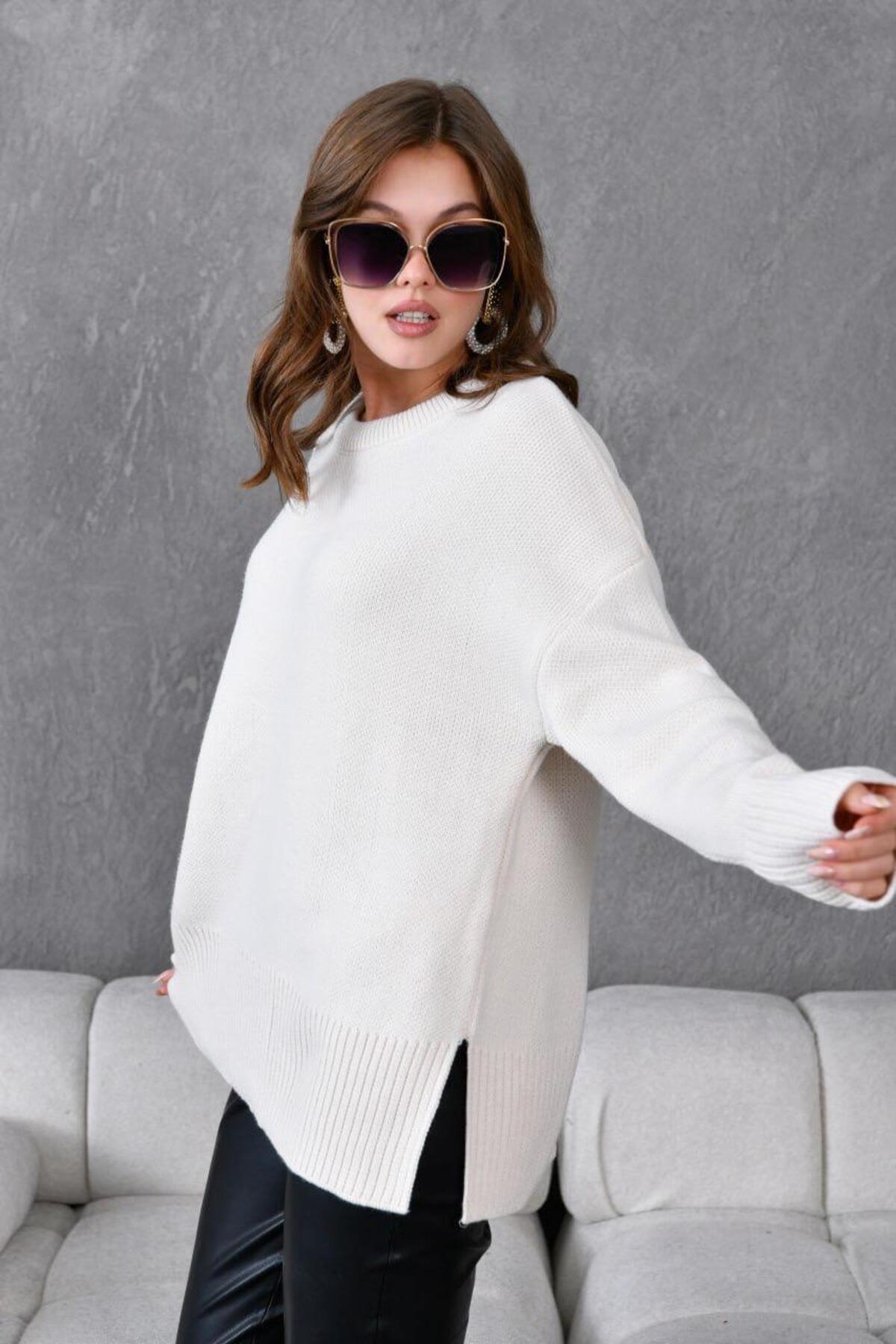 Premium İplik Bisiklet Yaka Fitil Detaylı Kazak Premium İplik Bisiklet Yaka Fitil Detaylı Kazak DGN2405ESMA Standart