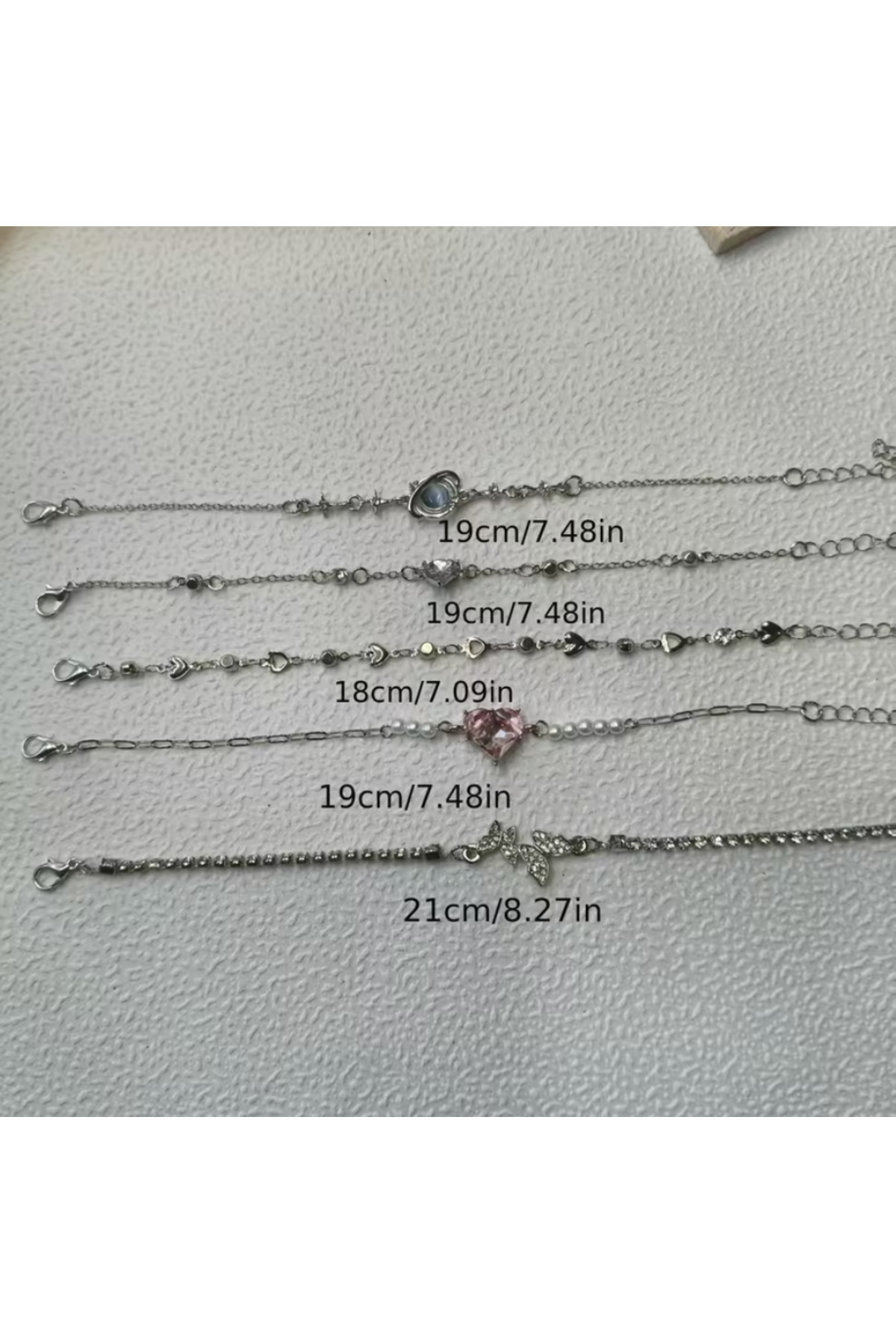 5 Parça Şık ve Sevimli Kalp Kelebek Charm'lı Bileklik Seti, İnci Taşlı Pembe Bileklik Seti 5 Parça Şık ve Sevimli Kalp Kelebek Charm'lı Bileklik Seti, İnci Taşlı Pembe Bileklik Seti 20057 Standart
