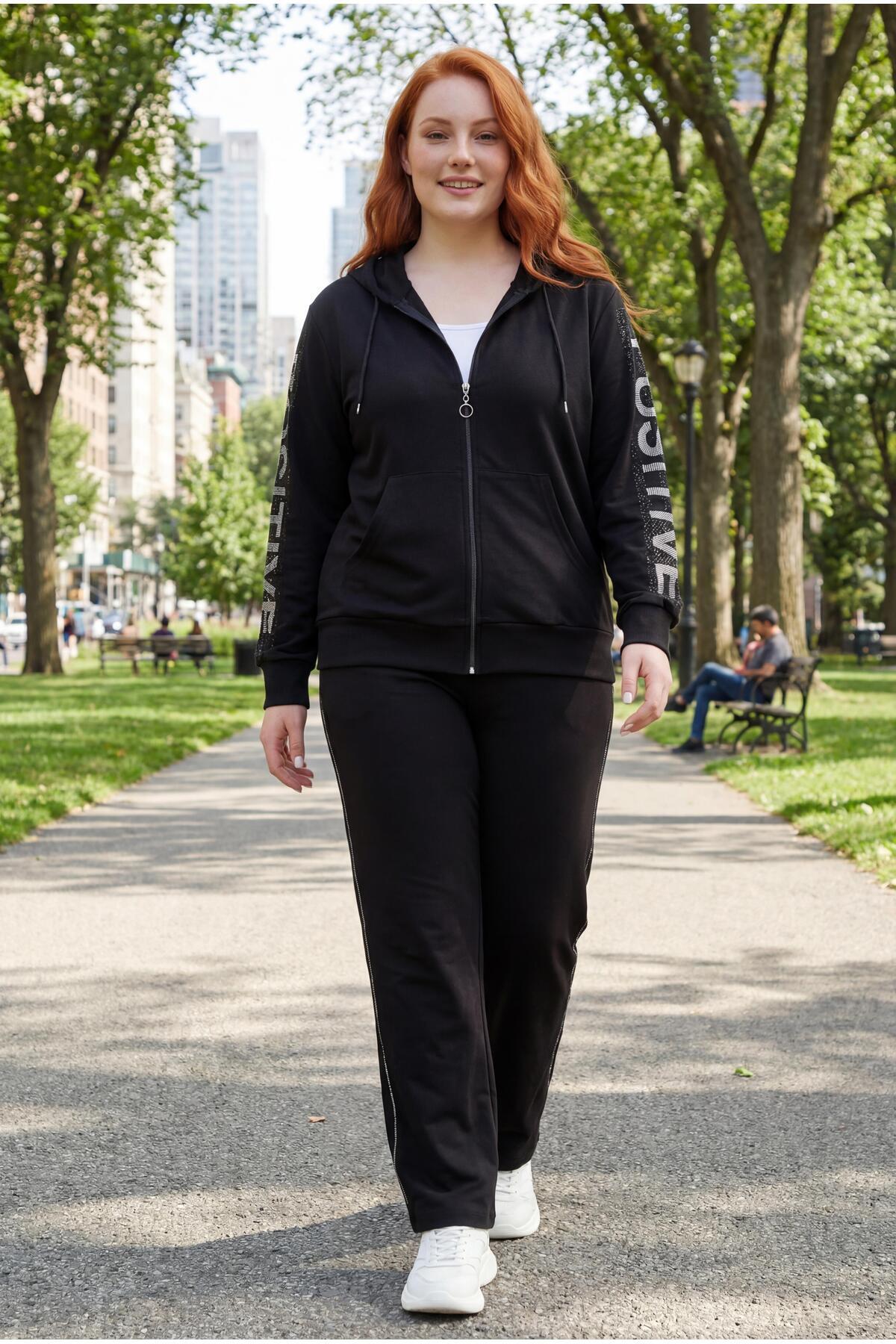 Kadın Büyük Beden Fransız Kadife Siyah-Taşlı Yarım Garni Eşofman Takımı Kadın Büyük Beden Fransız Kadife Siyah-Taşlı Yarım Garni Eşofman Takımı FRKD-YRTAS-SYH 50-52
