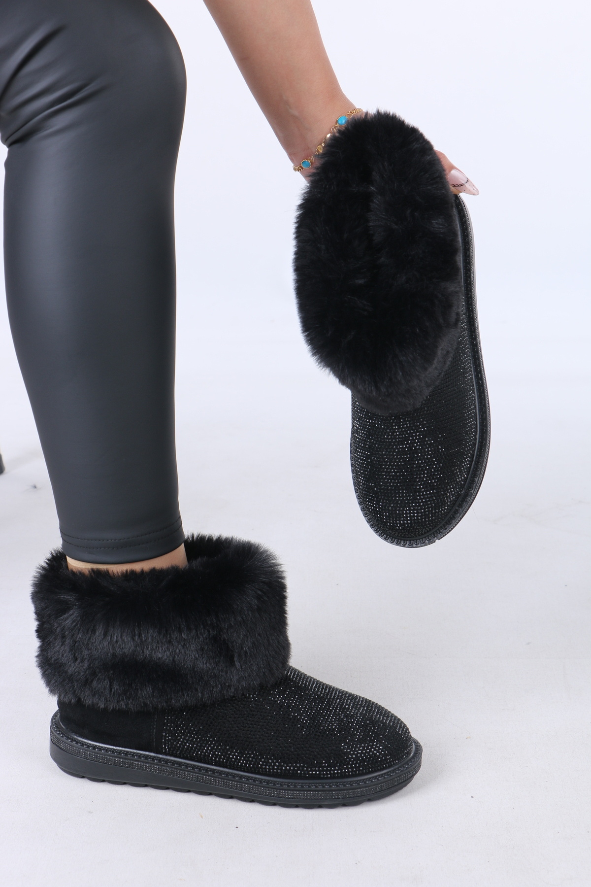 Kadın Kışlık Kürklü ve Işıltılı Taşlı Bot – Siyah Kadın Kışlık Kürklü ve Işıltılı Taşlı Bot – Siyah loly00012vibe 40