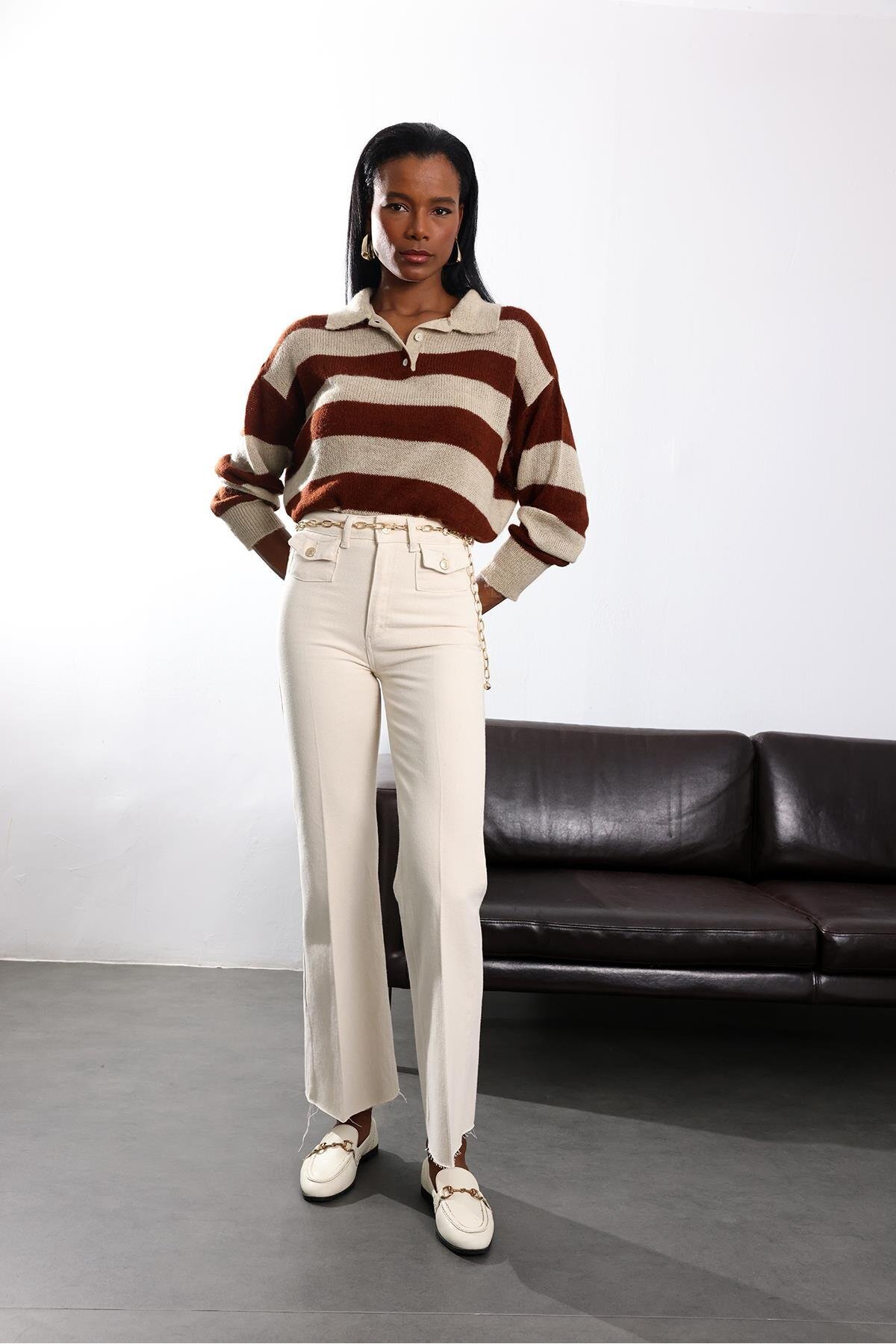 Kemik Yüksek Bel Kemerli Flare Jean Kemik Yüksek Bel Kemerli Flare Jean FW-PTLN2233 42